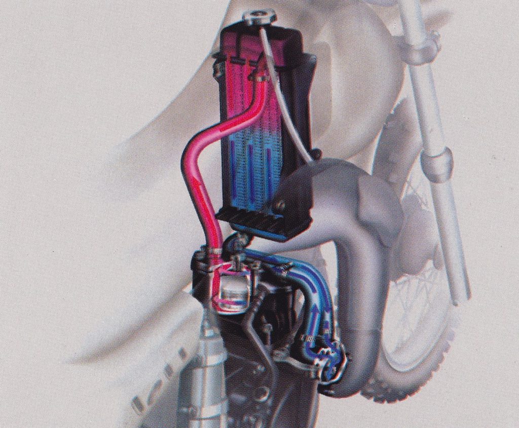 In designing the new motor, Honda chose to keep the same basic internal dimensions as 1982. Both motors shared the same 49.5mm x 41.4mm bore and stroke and 79cc displacement. The new motor did feature all-new porting and a switch from a side-port-to a center-port exhaust for improved flow. With the switch to liquid-cooling, the new motor had an all-new look and appeared to be literally half the size of ’82. Fuel delivery was handled by a 26mm Keihin round-slide mixer, fiber reeds, and an all-new airbox. The new airbox was larger for ’83 and repositioned from the side of the motorcycle to below the seat, just like the full-sized CRs.