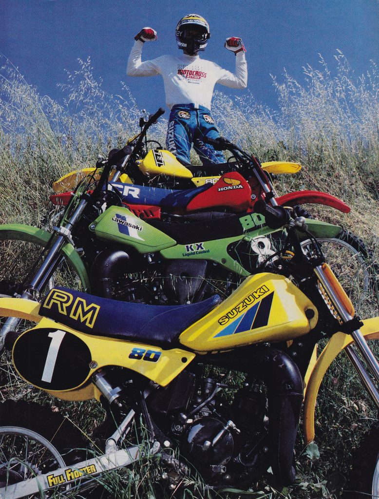 The 80cc division of 1983 was one of the most hotly-contested ones in motocross. All four machines were completely redesigned, with powerful liquid-cooled motors, single-shock linkage rear suspension systems and most of the trick features of their bigger brothers. Photo Credit: Motocross Action
