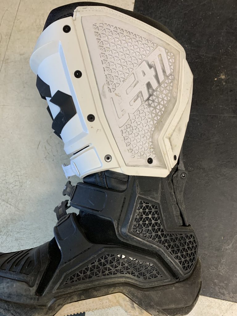 The Leatt GPX 5.5 has far better foot mobility than a normal non-hinged boot, yet gives you the ability to lock out as much ankle movement as you want. The GPX 5.5 size 10 weighs just under nine pounds, which is around the same weight as most mid to top tier off-road boots. For most riders, especially us older guys, the lighter the boot, the better it can be for our legs, as it’s easier on your knees and mobility. It’s funny because when I weighed the boots I was expecting the GPX 5.5 to weigh less than it did because when riding with them, it didn’t feel like nine pounds of boot on each leg. They feel lighter than a Tech 10 and DO NOT cause my legs to get as tired when the track is deep.