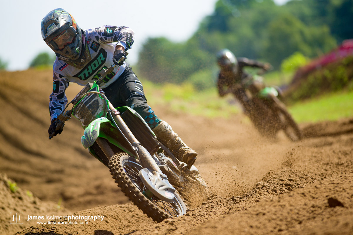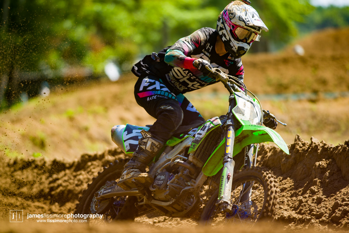 As you would expect, Phil Nicoletti, wasn’t going to let Wright take the win without giving it everything he had, and even though the Honda pilot was able to get away in each of the three motos, Filthy Phil never let up for one second, riding hard to the checkered flags. He fell in moto one, but came back to get Matt Goerke at the finish line, for third, and then rode to two second place finishes in Sunday’s motos. Unsprisingly, the closest Phil got to besting Wright was in Sunday’s final, hot, humid and rough moto, where Phil kept him in sight all moto but couldn’t pull the trigger. He’ll no doubt be the biggest rival for the 450 title as the series rolls on to two straight weekends at the harder packed, Walton Raceway.