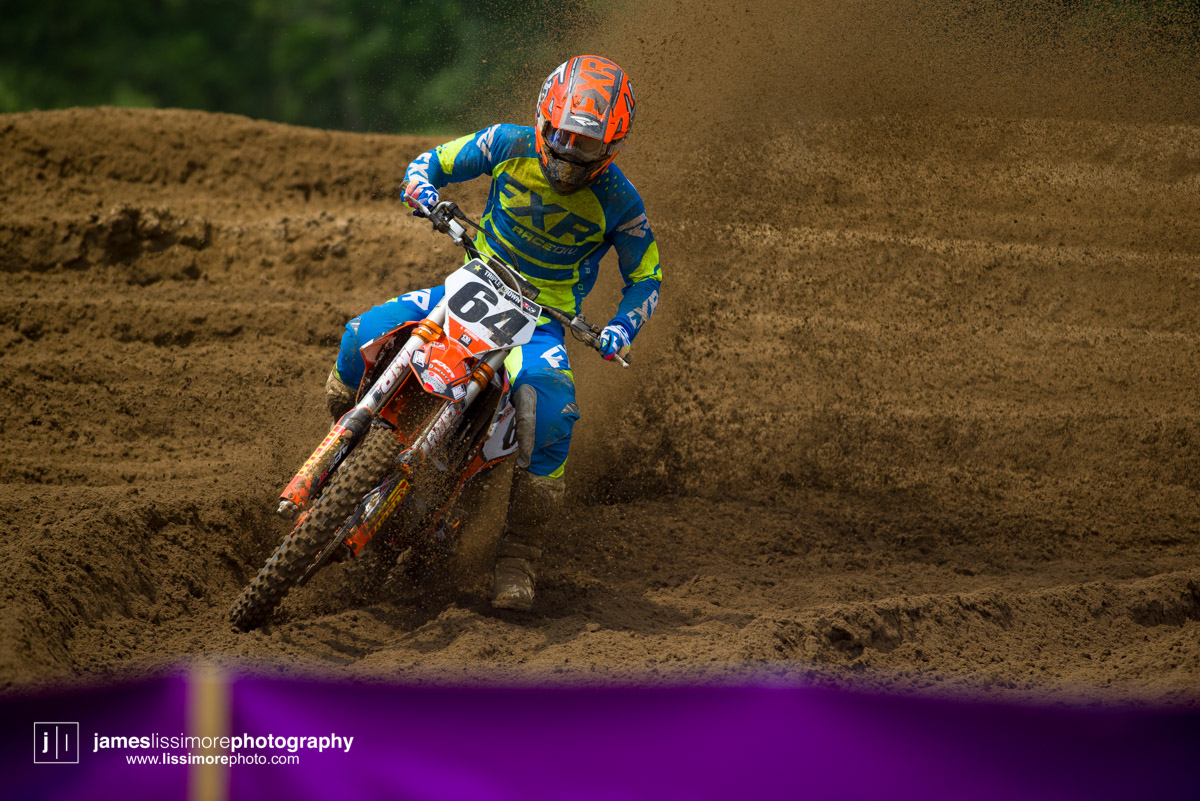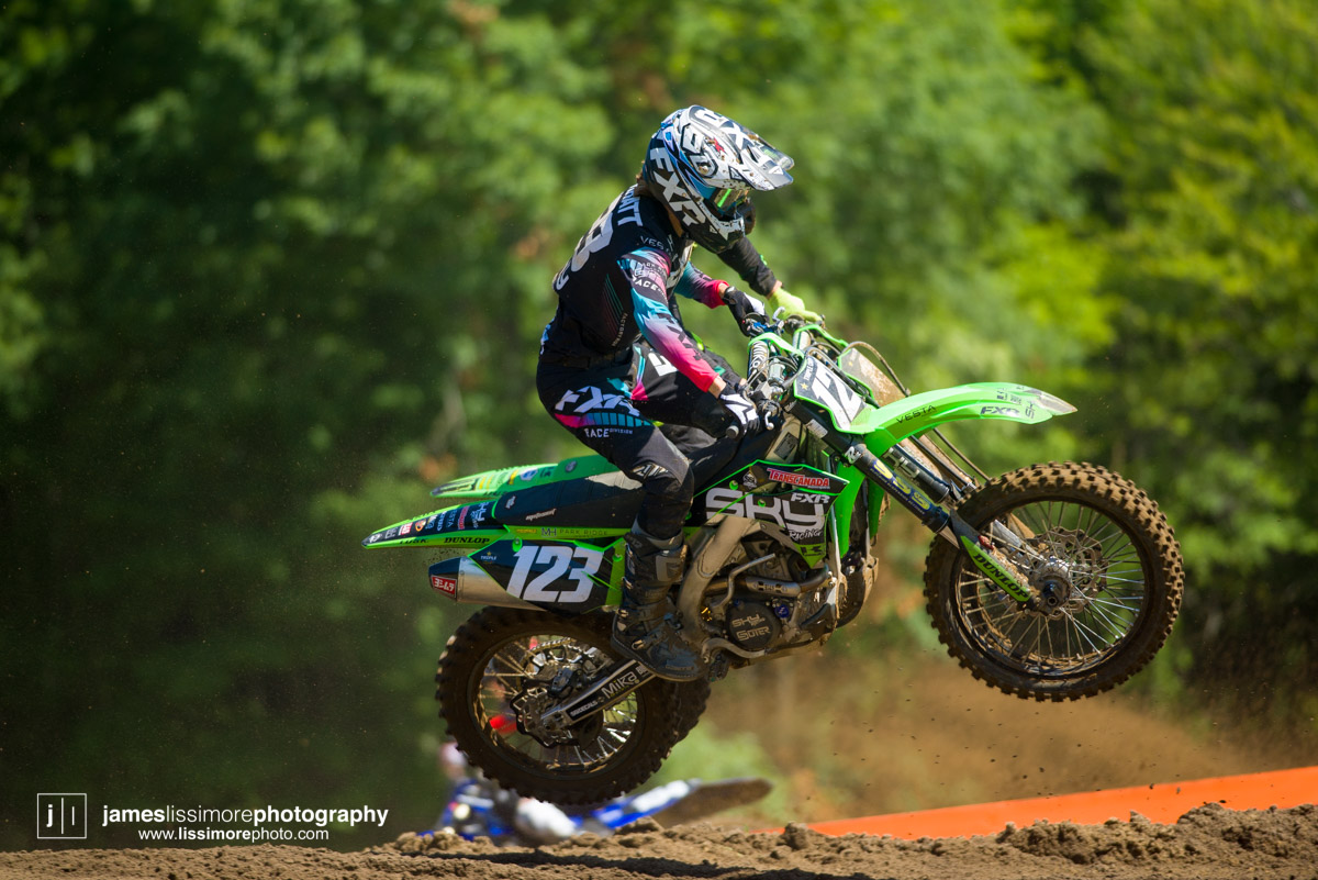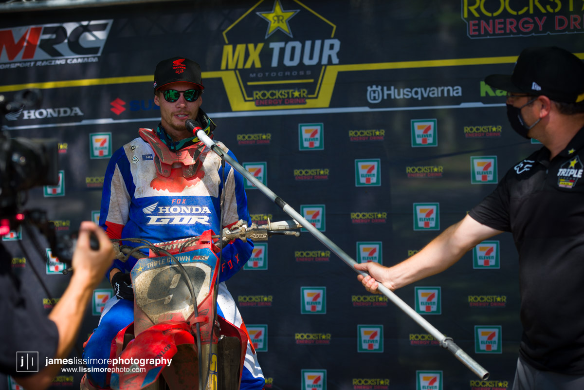 With the border shut to non-essential travel, there’s not as many Americans racing the Canadian series as usual, but Josh Cartwright is riding for the PRMX Kawasaki team and turned in an 8th place overall finish.