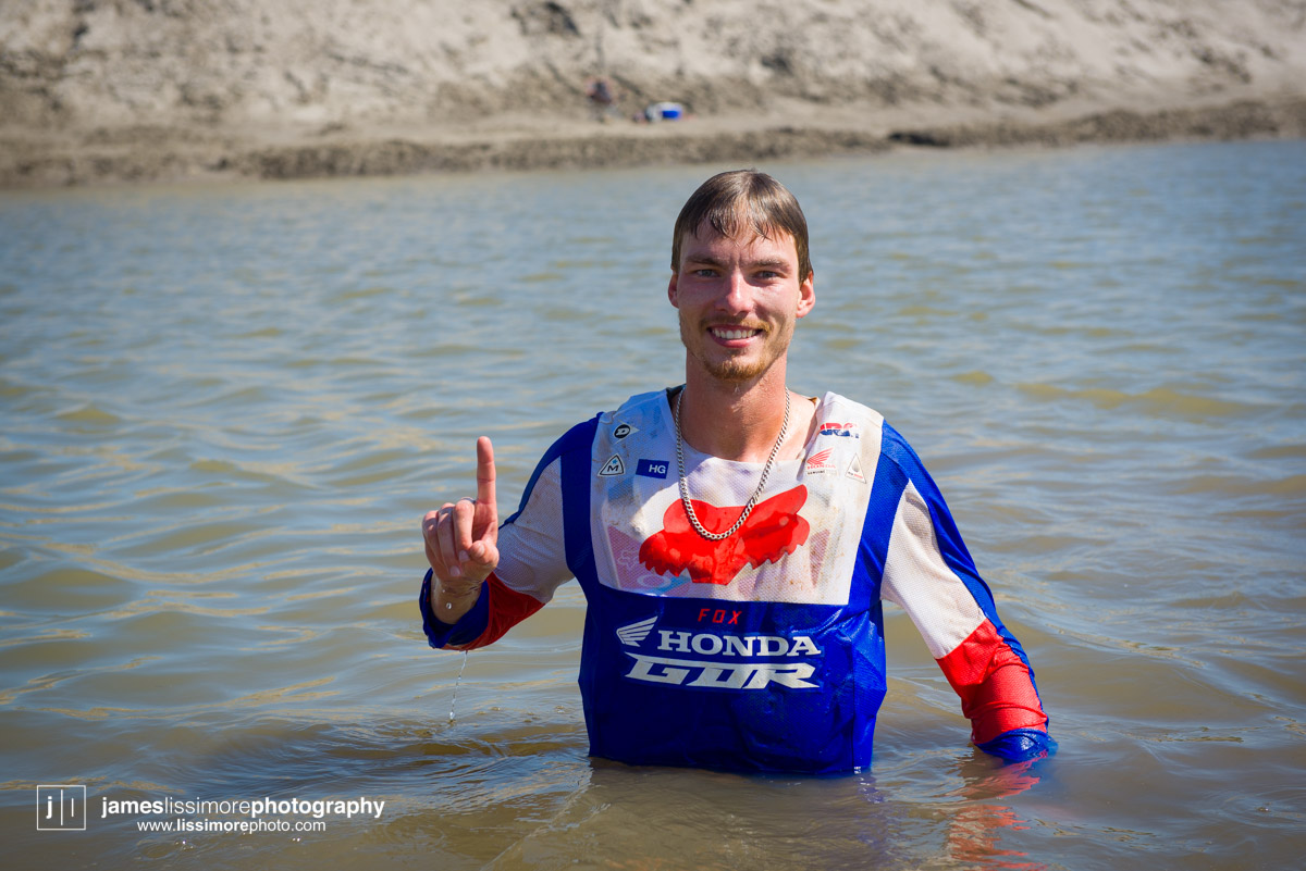 Dylan Wright celebrated his undefeated start to his 450 career with a dip in the pond.