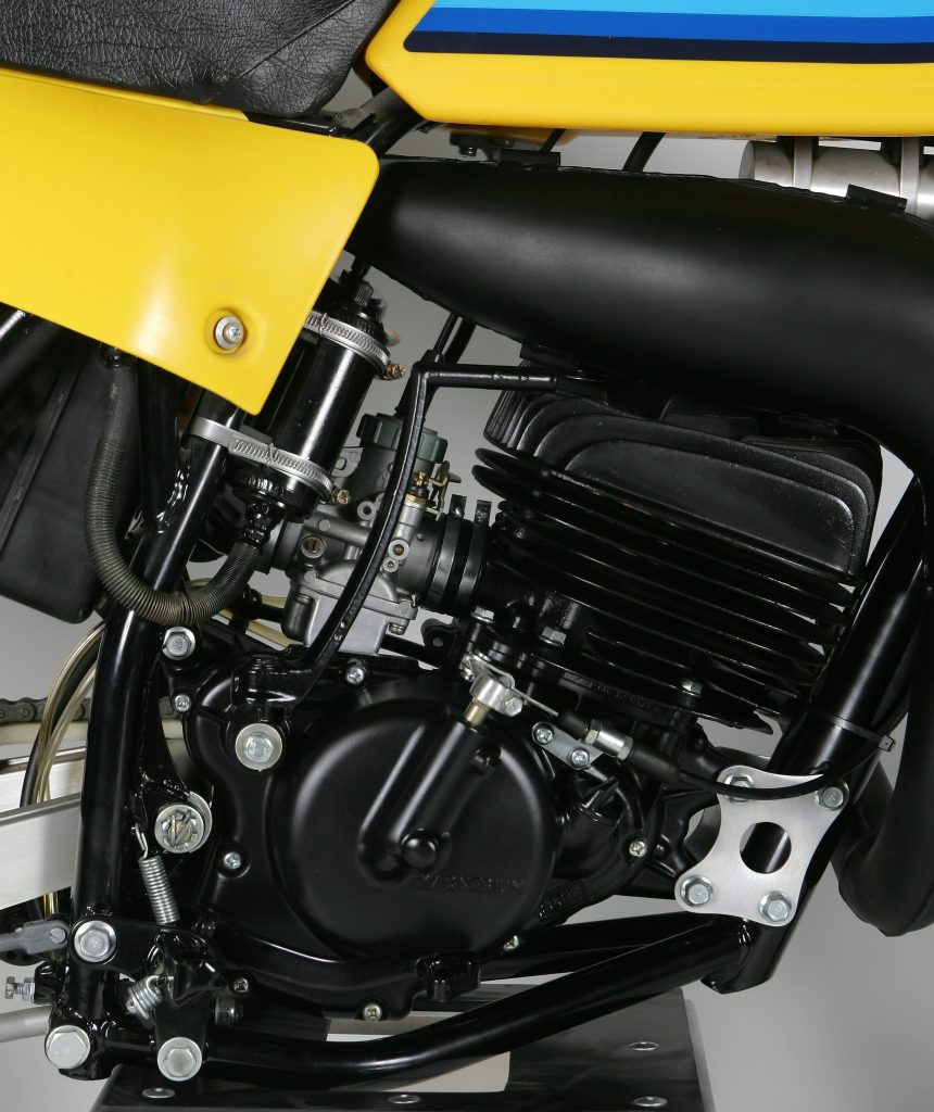 The RM’s all-new 123cc motor for 1979 ran very differently than the mill it replaced. Max output was up by two horsepower, but that peak came at a much lower point on the curve than the year before. Unlike the top-end-focused ’78, the new motor did its best work in the midrange. Photo Credit: Stephan LeGrand