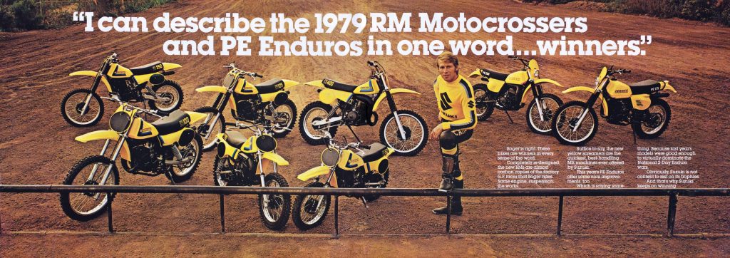 The seventies were a great era for Suzuki’s motocross program. At the pro level they dominated, winning countless National and Grand Prix Motocross titles during the decade. At the local level, they were just as successful with their excellent line of RM motocross machines. The RMs were light, fast, well-suspended, and ultra-competitive.