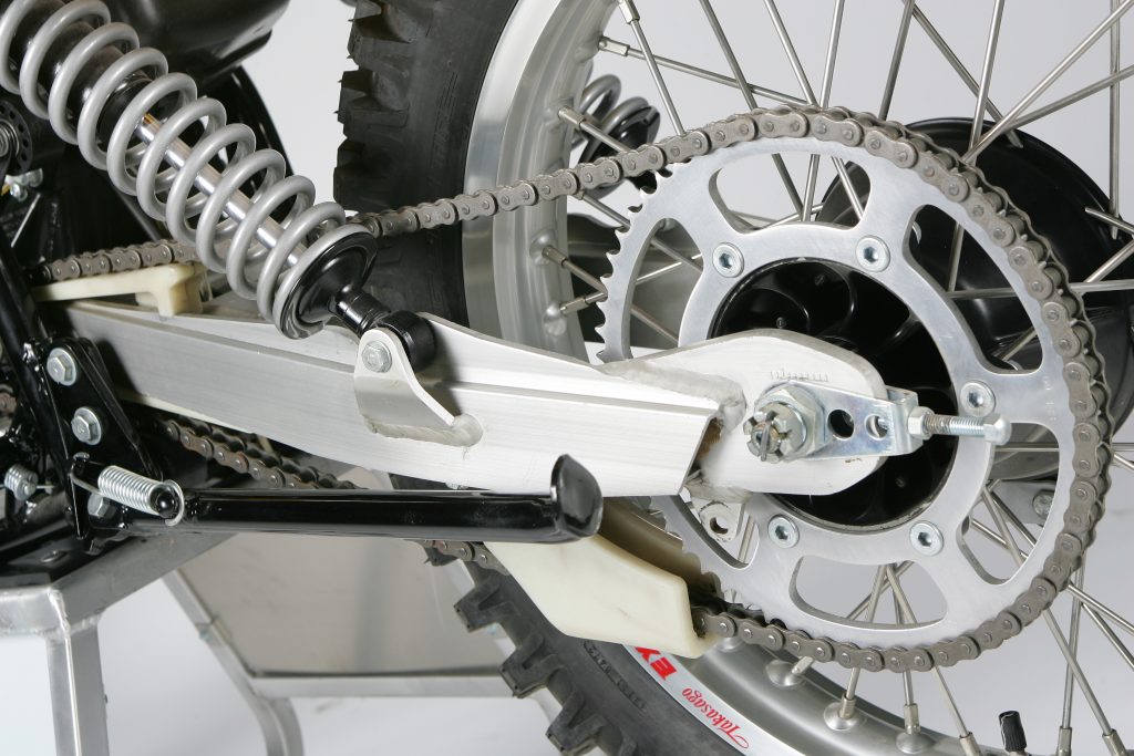 An all-new extruded alloy swingarm for 1979 promised improved strength and added travel. In 1979, this was one of the most sano setups in moto. Photo Credit: Stephan LeGrand