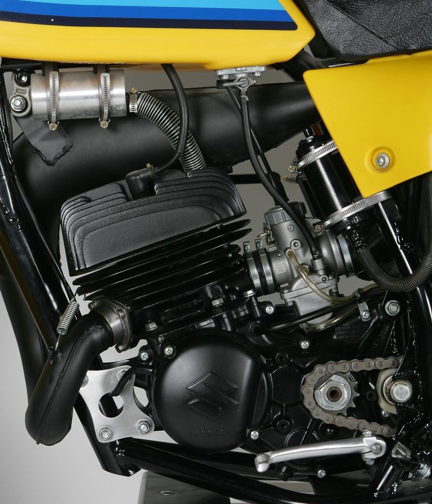 Throughout the seventies Suzuki’s two-strokes featured a unique semi-case-reed intake design they called the “Power Reed.” The theory behind the Power Reed was to combine the advantages of a case-reed and piston-port intake into one design. Photo Credit: Suzuki
