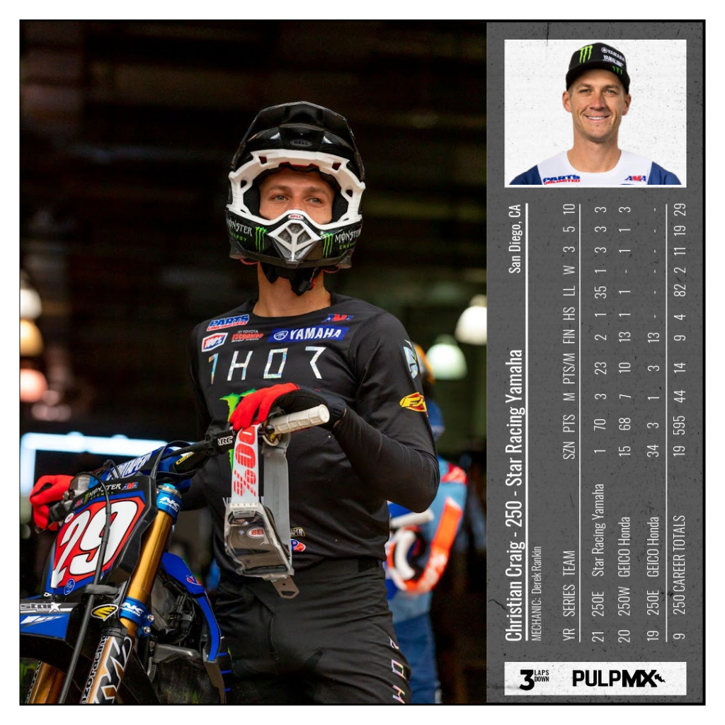 Christian Craig finished 3rd in the 2016 250 west series behind Cooper Webb and Joey Savatgy. He got his first win and 5 podiums and was poised to contend for the title in 2017. Instead he missed multiple rounds in each of the next 4 seasons as a result of injuries. But a new team in 2021 has rejuvenated the veteran. He’s been on the podium all 3 rounds and when he didn’t feel his best at round 2, he used his veteran patience to ride within his comfort zone and stay in the championship hunt.