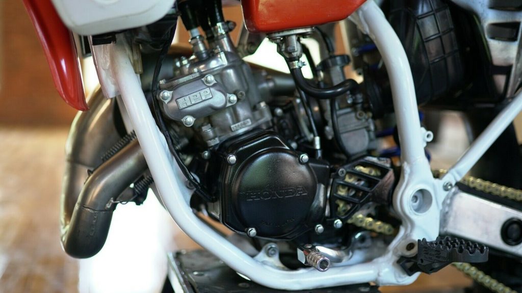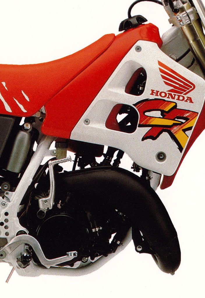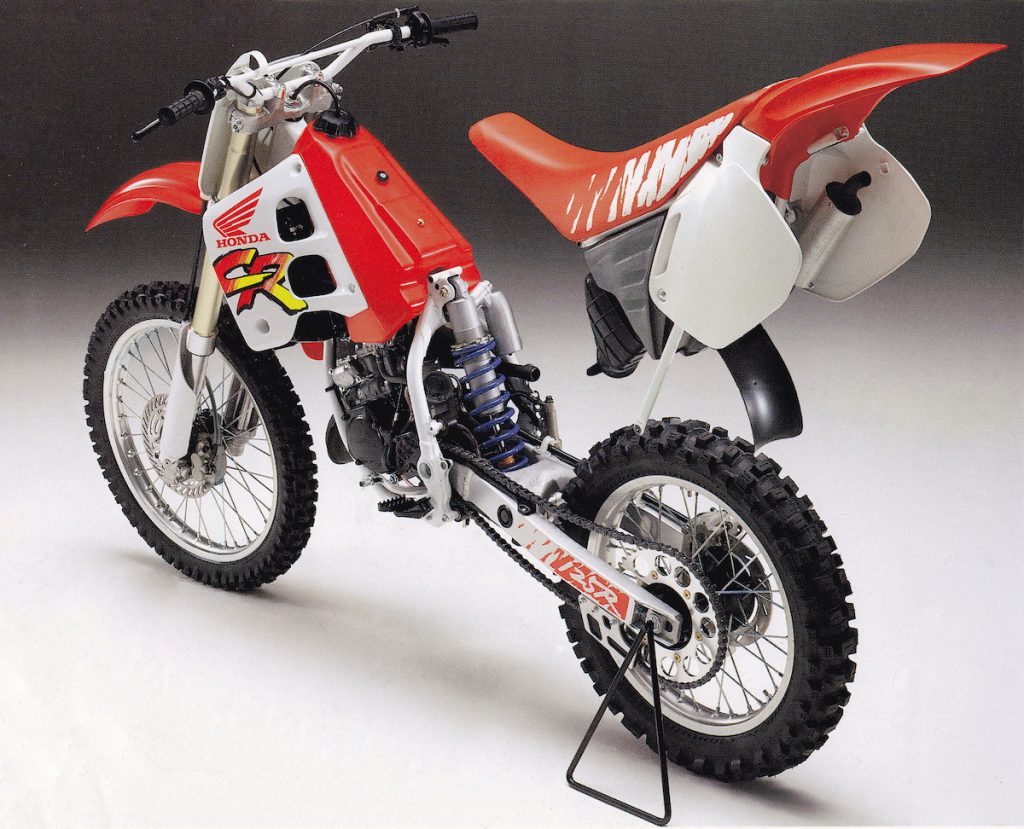 In 1991, the CR’s case-reed HPP mill produced a long and strong flow of power that took off in the middle and never stopped pulling. Low-end power was sorely lacking but once the Honda was on the pipe it had no equal. Photo Credit: Honda