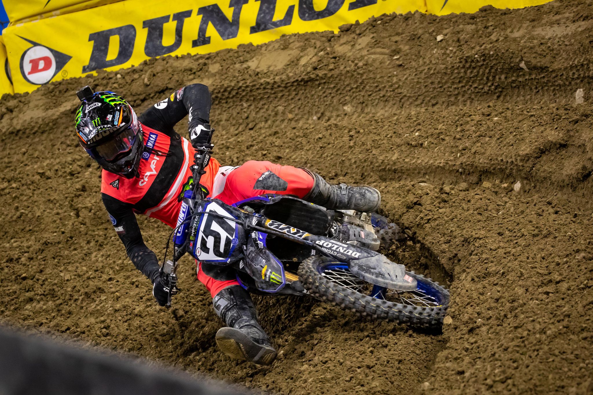 Malcolm Stewart’s Star Racing Yamaha: The machine that I was most excited about watching this year was this one! I have ridden the old 2020 factory version and I thought it was pretty damn good! From what I see on my couch is that the riders may need a little more pull out of the gate. It seems like Aaron, Mookie and Dylan all get pulled a bike a half a bike length once off the grate. This is a slippery slope though isn’t it? You give them more power and then it becomes a pain in the ass to ride aggressive for 20 minutes on a rough SX track. So I am sure that the riders have to pick their poison when it comes to starts or the rest of the race. I don’t like how much the rear end squats under heavy acceleration out of corners as that could give too much teeter totter effect to the riders. Even with stiff SX suspension there is still some movement in the chassis that isn’t there on other machines. It does however look to be better than last year’s off/on throttle teeter effect though. It looked like with this block of Indy races, the Yamaha YZ450F has better cornering when the track gets rough. I could see that Malcolm was much more aggressive in corners, compared to the Houston rounds. I do know that Malcom’s still on an air fork and the other riders are NOT. I can’t say much about anything other than I would rather be on what Aaron and Dylan are riding. Kudos to the guys at KYB for absolutely working their balls off for these Star Yamaha riders and getting them comfortable. The job of a suspension tech doesn’t get enough credit!