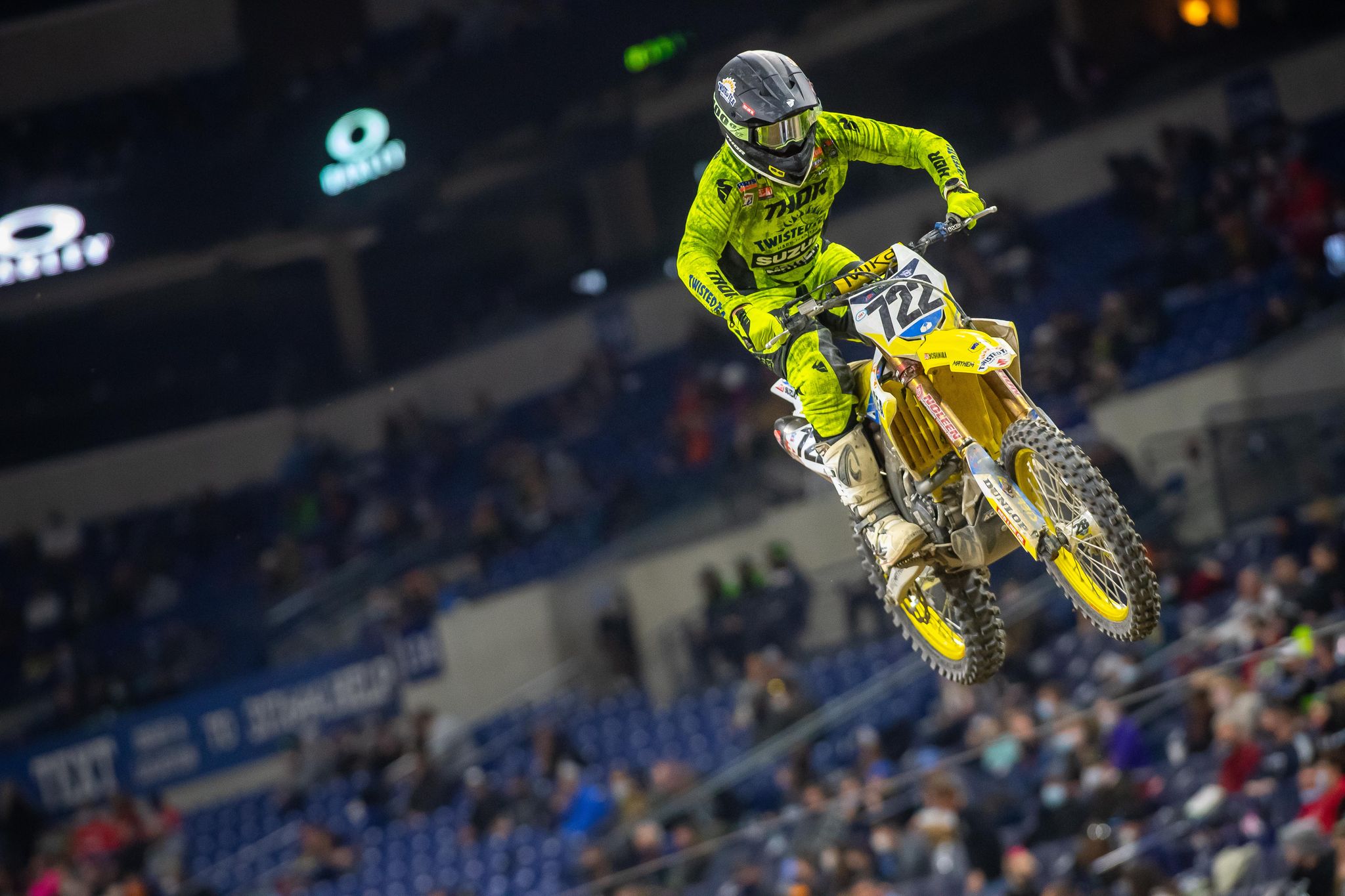 Adam Enticknap’s HEP Suzuki RM-Z450: No hate comms on this Suzuki! The HEP/Twisted Tea Suzuki has some changes from last year’s race machine and one of the big ones is the move from OHLINS to factory Showa stuff! This is HUGE for the riders! Clark Jones of Noleen Racing is still helping the team, but now the riders are getting the same treatment that other factory riders, that run Showa are getting. From what I can tell and have heard from Enticknap is that the bikes are much more consistent and have better hold up along with slightly more comfort. I don’t know much about their engine package, but I would love to test one of the team’s outdoor settings! COUGH COUGH, Dustin Pipes! The Suzukis have been getting off the gate well for the team but Indy 3 wasn’t kind to Hartnraft. He came out to ride with me in between Houston and Indy and he said that his bike is awesome and he is not giving anyone any excuses. he says that all the 450 riders are gnarly and he needs to pick up the pace. He feels he needs to learn from these more experienced 450 riders. This #RMaRMy team is a strong one and so is the bike!