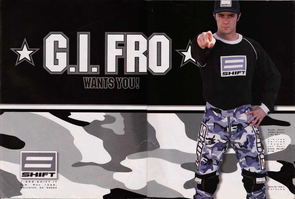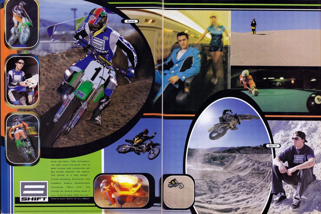 In its inaugural season, Shift’s portfolio was littered with designs that have since become icons of late-nineties moto. Everything from camouflage to gold chains and leisure suits could be found in the Shift portfolio. With Shift leaning hard into Emig’s already legendary off-the-track antics, the brand and rider seemed like the perfect match.