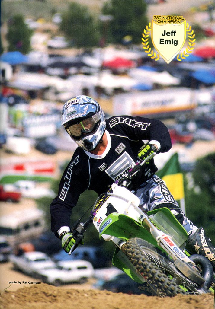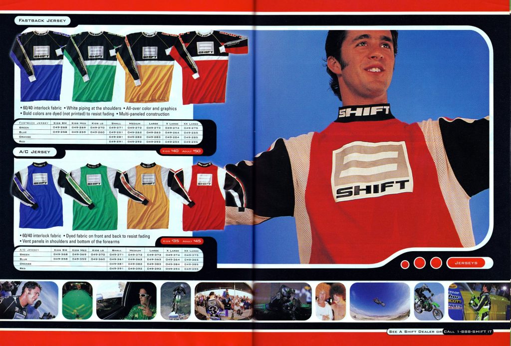Launched in 1997, Shift’s first major coup was the signing of newly-crowned 250 AMA Motocross champion Jeff Emig away from Thor. At the time, Emig was just coming off of his first major 250 title and he turned out to be the perfect rider to build Fox’s new free-spirited brand around. In that first season Emig delivered the brand both the AMA 250 Supercross and 250 Motocross tiles in an unlikely sweep over the previously unbeatable Jeremy McGrath. This, along with Shift’s bold designs, immediately lifted the start-up brand to one of the most prominent positions in the sport.