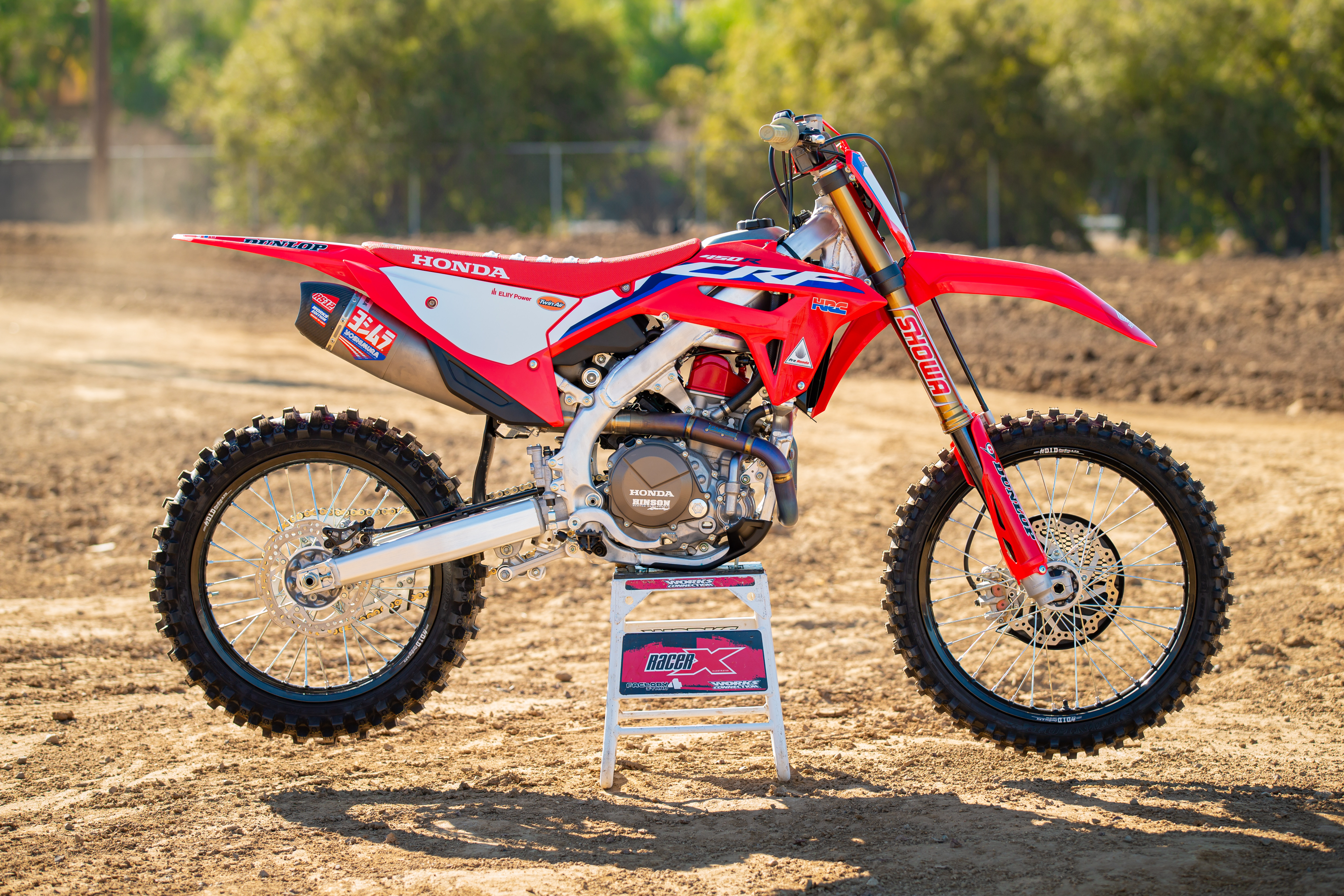 You have no idea how much I love/hate this 2021 Honda CRF450R/WE. This bike calls my name every time I walk out into the shop and like the sucker that I am, I always crawl back to it. Some of my best days at the track have come on the 2021 Honda CRF450R and also some of my worst. Even though the 2021 machine is less finicky than the 2020 version, it’s still tough to obtain a consistent level of comfort, out of the Honda’s chassis, from track to track. I am determined (for me and for you) to make it comfortable to go fast on and hit bumps at speed without feeling like I “HAVE” to find the smooth line. Here are a few things that I have been messing with a lot lately that is actually bringing me closer to the Honda CRF450R. No, it’s not as comfortable as a Yamaha or Kawasaki in the chassis department, but doing these mods below really has helped me take the Honda out of the shop and into my van for a happy moto day.