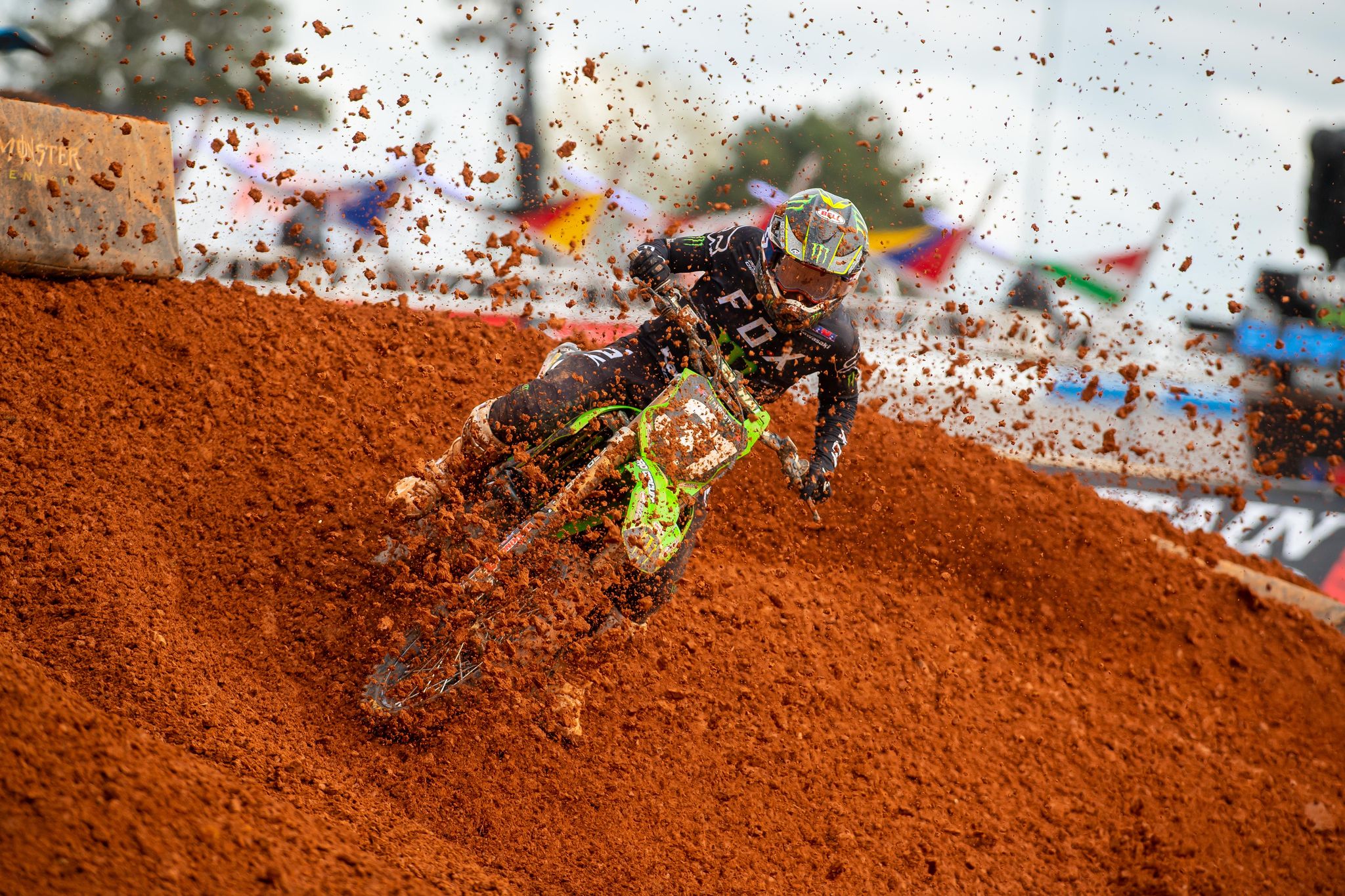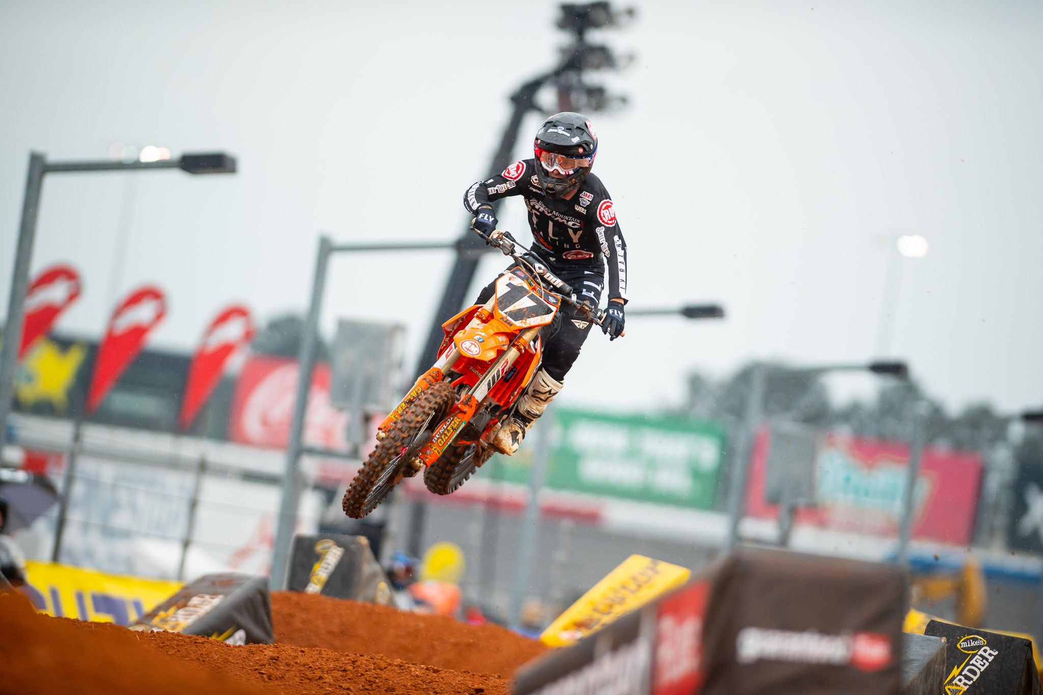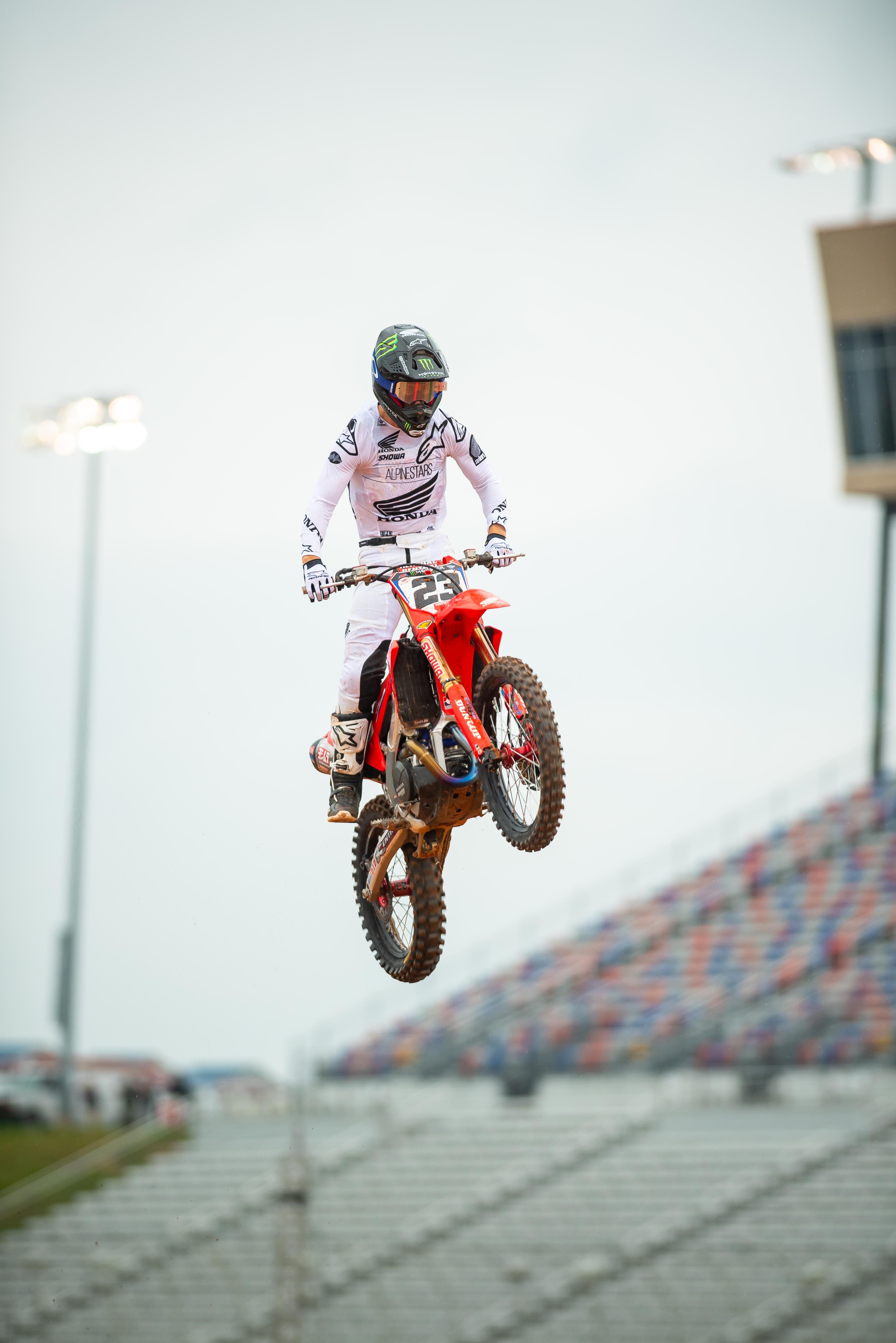 The Atlanta Motor Speedway track created some great racing Saturday afternoon and although it did get wet, the mud race we were all dreading never happened. What is crazy is that even though the main events got shortened, the lap times were long, yet the main events were only 9 (250) and 12 (450) laps respectively. Why did AMA cut the time down? Is our sport getting soft? COME ON!! The riders didn’t get a ton of laps under their belts for practice, so seeing several mistakes in the heat races were real. I also noticed that there were several close calls when it came to riders landing on one another. I have never seen so many riders “almost” land on one another in my life! Watching from home proved to be very stressful! Here are some things I noticed while viewing from the confines of the house. Hopefully I can be at SLC to view all of this for myself!
