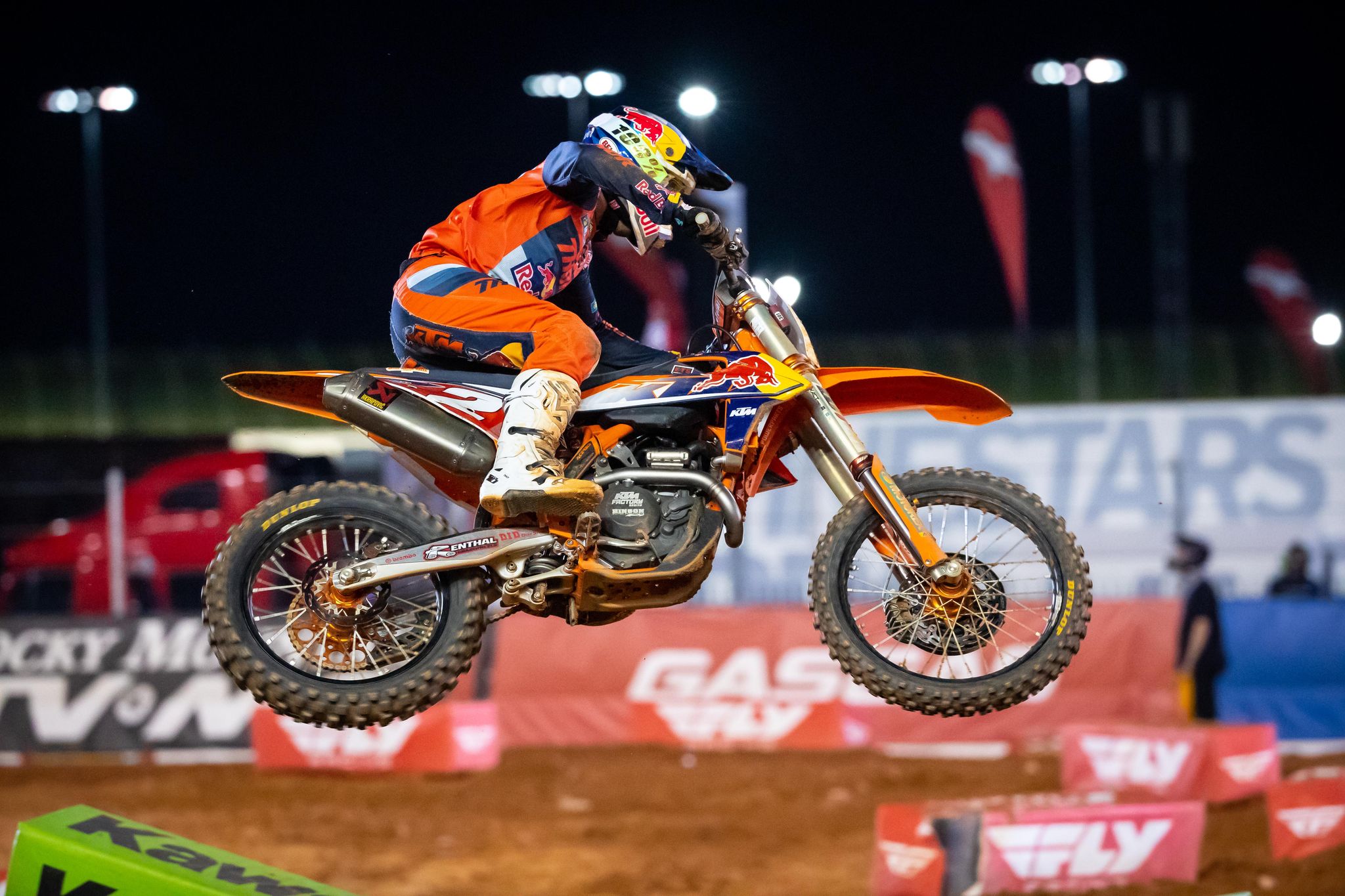 Justin Barcia: “The Frog” was active for the 14 lap main event and looked to have a podium but Anderson just had a little more in the tank. I have been so wrapped up in SX, but now that MX is around the corner, don’t you think that JB51 has a damn good shot at that title? I mean we know how good he is outdoors and what he did last year at Loretta’s so I am thinking he is better on this Gas Gas this year so. that should set him up nicely to battle for this 2021 outdoor tittle. Oh and I am not a HUGE Troy Lee Designs gear fan, but they have been killing it with JB’s gear sets this year. This set on Barcia has got to be the best gear set I have seen all year! Kudos to them!