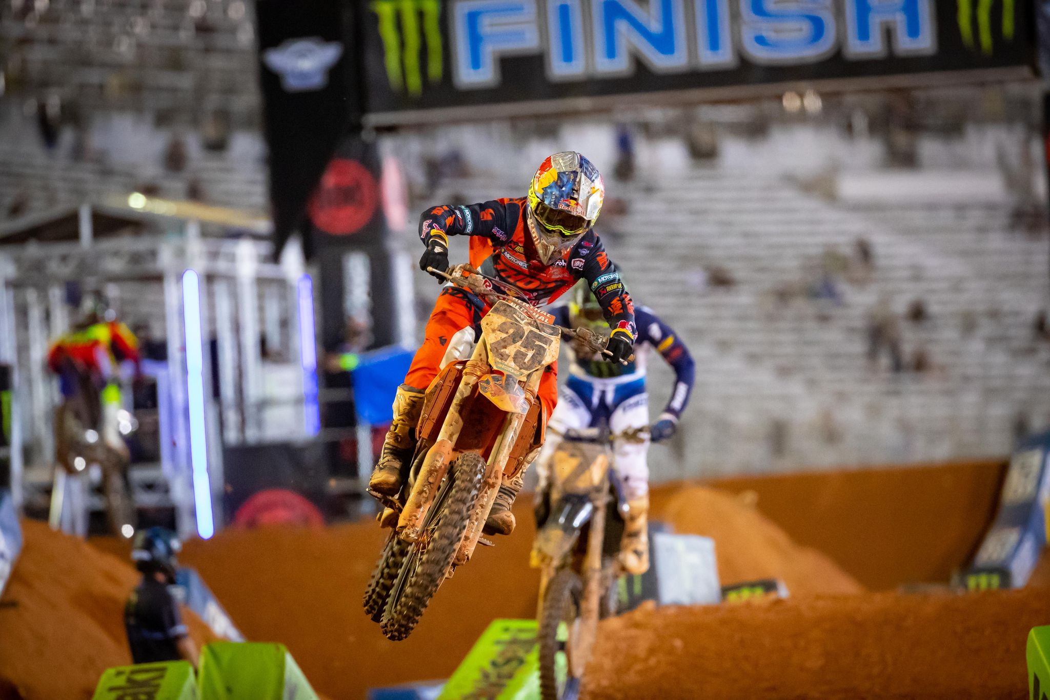 As they cut to a break on the Peacock broadcast, the floor microphones were still hot and you can hear the kid wanting to get back on the bike and race. INSANE! Then with the bike/body all banged up, he almost pulls the holeshot and toughs it out for a podium! What?! It’s tough to inspire me at this age of my life, but watching Mac come back like that inspired me as well as my kid! We both sat there in awe and amazement. Mac showed my 15 year old son what it takes to make it in our sport! HEART! You can’t buy it, you just have to have it inside of you! My son may think this sport is all cool guy and fun, but this shows him that hey, things can go south in a hurry and sometimes you have to get back in the game, even if you’re all jacked up! Oh and the red flag debacle is strange to me, but I honestly don’t give a shit about it because the kid deserves his podium. Thanks Cam for being ok, but also for giving us fans a snippet of what it takes to be a top level Supercross racer. You’re a better man than me!