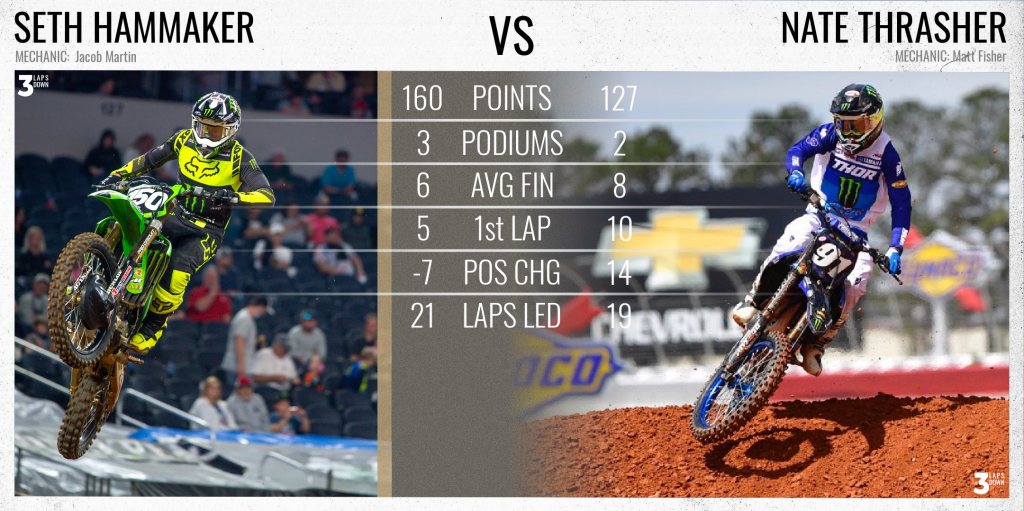 Seth Hammaker – first win. Seth got his first career 250 supercross win in just his 3rd race. While this is impressive, keep in mind that at 20 years old, he’s 1-2 years older than Jett Lawrence, Jo Shimoda, Nate Thrasher, and Garrett Marchbanks who also have wins.