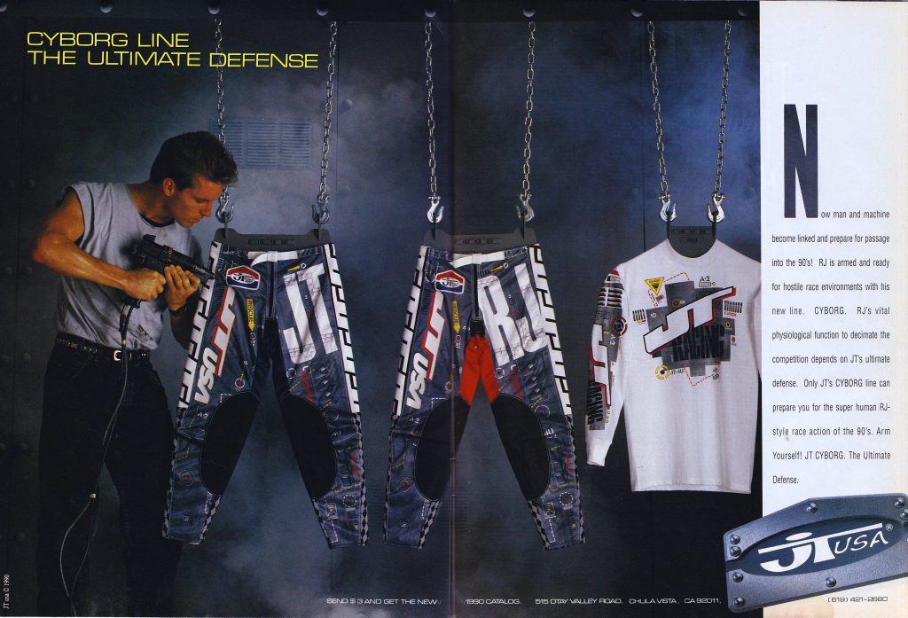 Towards the latter part of the decade, however, JT Racing started to face some serious competition from Fox Racing and AXO Sport. Pete Fox’s inspired designs and Jim Hale’s marketing wizardry started to chisel away at JT’s dominant position. By 1988, JT Racing was no longer the gear to have with many riders migrating to AXO, Fox and Answer.