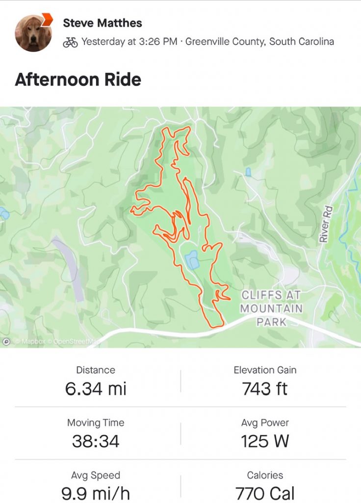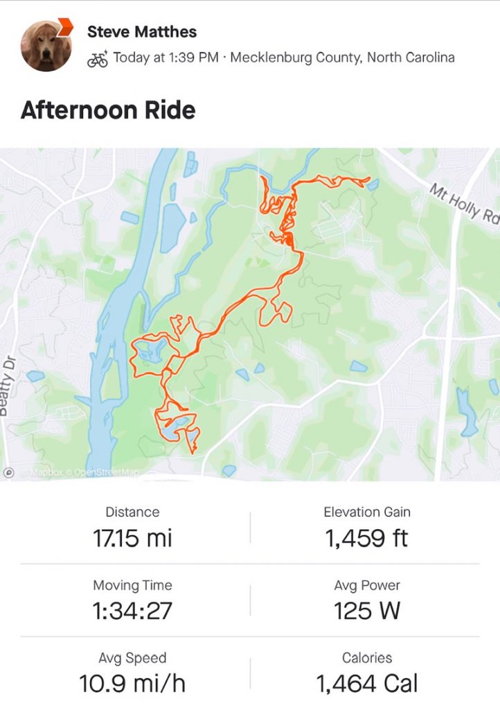 1. Do you use Strava on your phone to track your rides or do you have a computer? If you have a computer you either need to get a wheel sensor or re-calibrate it if you do cause you’re shorting yourself on your mileage. The phone only route will also short you significantly. I’m local to Charlotte and you’re 3 miles short at Sherman Branch. If you’re gonna track your rides and put in all the effort you might as well get full credit for it!