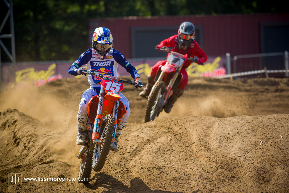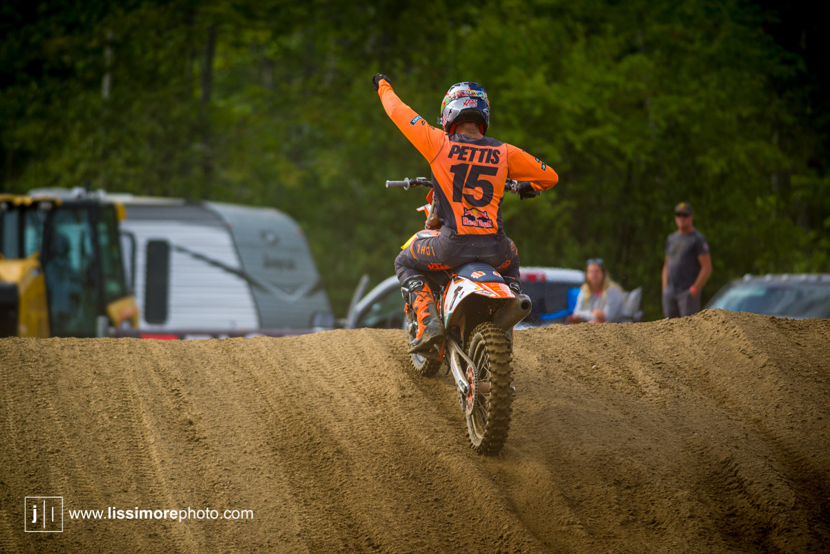 Wright had just made the pass for the lead and Pettis looked to be comfortably in second when disaster struck. He went down hard and just like that, this amazing fight for the 450 title was over. Pettis suffered some cracked vertebrae in the crash and will be out for the remainder of the season.