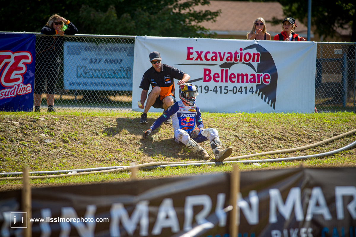 As has been the case all season, Wright was the fastest rider at Deschambault, but a big crash in Sunday’s second moto left him coming from dead last to 6th. He was able to bounce back and take the win on Monday to bookend moto wins for the weekend and with Pettis out, looks to have his title defence locked up with one round to go.