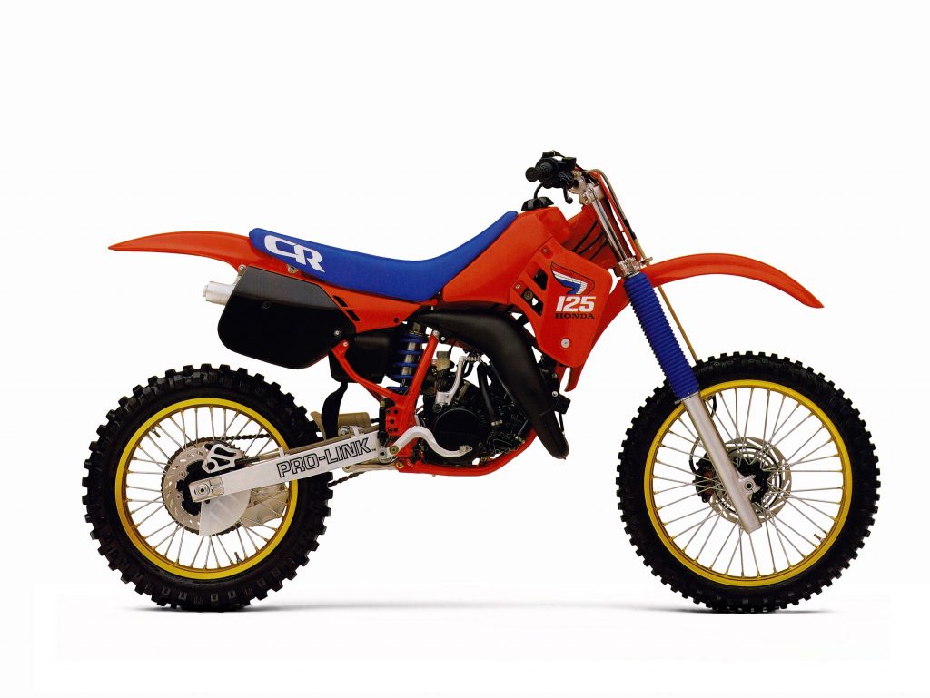 1987 Honda CR125R Overview: In 1986, Honda owned the 125 class with a monster motor that dominated the standings. After two years of playing second fiddle to Kawasaki’s powerhouse KX125, Honda came out swinging with a revised motor that beat the Kawie at its own game. The ’86 CR barked off idle and blasted through a blistering midrange hit. It was not much of a screamer, but it pulled hard enough through the middle to keep its rivals well at bay.