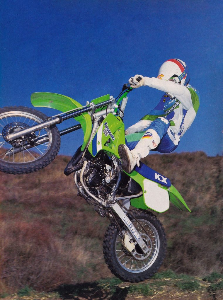 In 1987 Kawasaki addressed most of the issues that had torpedoed their 1986 effort but tried to save money in the suspension department and suffered for the decision. Photo Credit: Dirt Bike