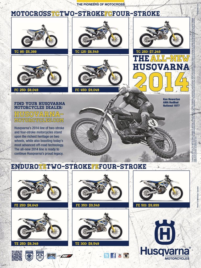 Today, Husqvarna is one of the most successful brands in off-road racing with several AMA titles in to show for their efforts. The KTM connection has brought the mainstream acceptance that the Italians and Germans could never deliver. While certainly not as quirky and unique as its forebears, a modern Husqvarna makes up for its lack of eccentricity with loads of competence on the track and trail. “White KTM” or not, there is no denying that the Austrians have done more to resurrect the historic brand than anyone since Kent Howerton. No longer the butt of jokes, Husqvarna has been revitalized by KTM and once again enjoys the prestigious position befitting one of the most historic brands in the sport.