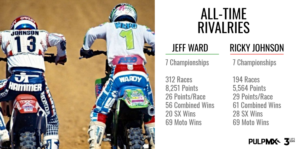 Who was better – Jeff Ward or Rick Johnson? Anyone that grew up watching or racing moto in the 1980’s remembers epic battles for many years. And for one reason or another, you were likely in one camp or the other. It was rare to find someone that liked both Wardy and RJ. If you were a Kawasaki fan, you probably like Wardy. If you were a Honda fan, you probably liked RJ. Regardless of why, it’s rare to find someone that was a fan of both riders.