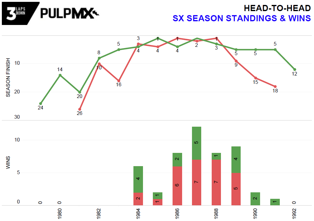 You could argue the key head-to-head stat for supercross is wins, but you have to give some weight to longevity and consistent wins/podiums across a longer career too.