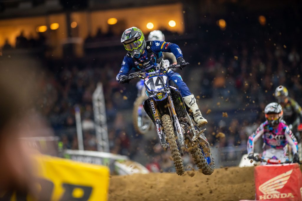 Jason Anderson: Anderson was scrubbing the on/offs, was on the throttle sooner out of corners than others, was consistent through the whoops. He was just on, in San Diego. In fact, the dude has been on all season so far. The Kawasaki looked to be the most balanced bike on Saturday night and also looked to have the most traction out of anyone. If you play back the race, you can see that it didn’t matter if he was in the shiny areas, he could accelerate through those with minimal rear wheel spin! You can tell he was comfortable with the bike from his qualifying times and that just set the tone for the night. But… We all saw what happened and from what I heard his radiator cap somehow popped off? Weird, but he managed to salvage a ninth!