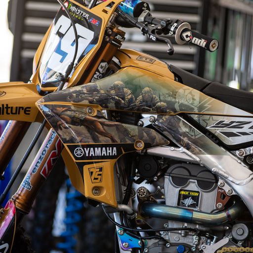 Team Solitaire: I have to give a shoutout to the Team Solitaire graphics made by Throttle Syndicate! The detail of the famous Army Ranger painting was impressive and the fact that one of the mechanics was an Army Ranger and could explain exactly what was going on with the graphic was jaw dropping. When you see a man break up a little when seeing his fellow brothers charging into a situation that you or I would never go into gives me chills. Thank you to all the men and women who serve our country so we can live free and get to do the things we love, like ride dirt bikes. Thanks Team Solitaire and Throttle Syndicate.