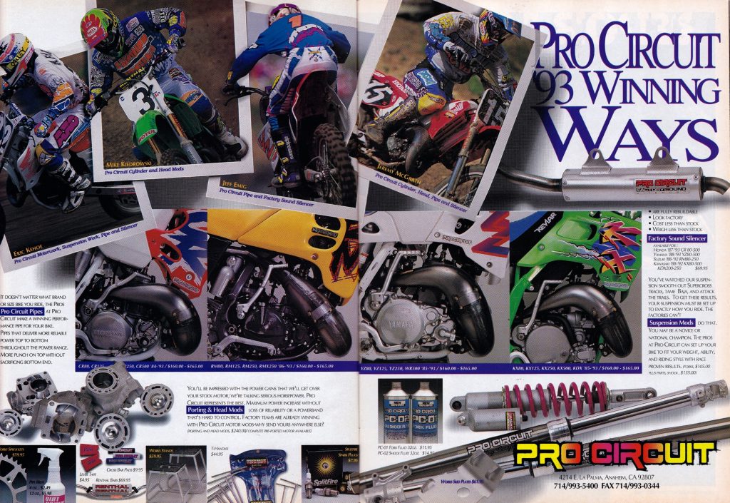 By 1993, Pro Circuit’s products graced the race bikes of three of the Big Four factory race teams. In a little more than a decade, Mitch grew his business from a Husqvarna dealership side hustle into one of the most respected brands in the sport. Photo Credit: Pro Circuit.