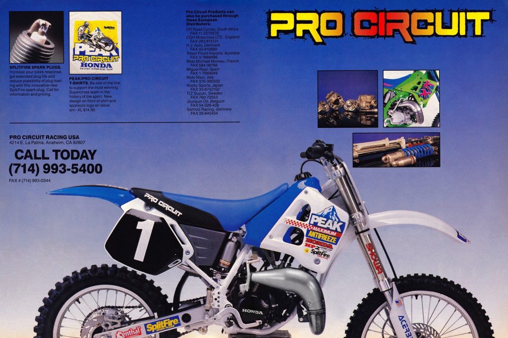 In 1991, the formation of the Peak Pro Circuit Honda team heralded yet another major shift in the trajectory of the Pro Circuit brand. Now the official Honda 125 support team, PC was charged with grooming the next Rick Johnson and Jeff Stanton for the official Factory Team. Photo Credit: Pro Circuit