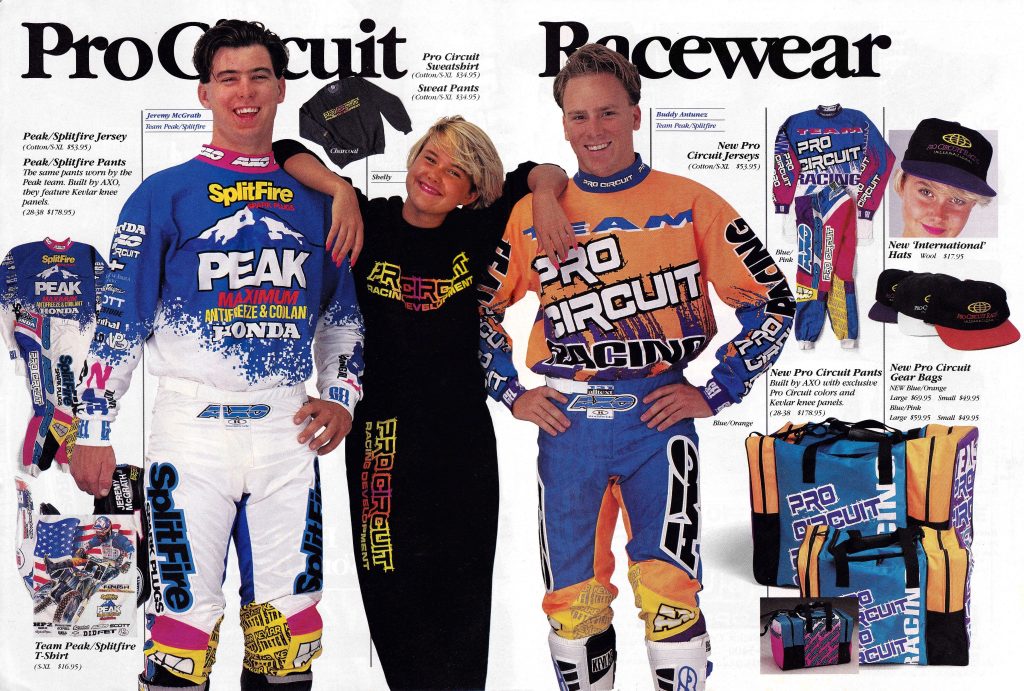 Peak Pro Circuit’s duo of Jeremy McGrath and Buddy Antunez dominated the 1992 West Coast Supercross standings looking amazing in their AXO Sport gear. I had this exact gear that The Budman is rocking in this ad and I think it still looks great even today. Photo Credit Pro Circuit
