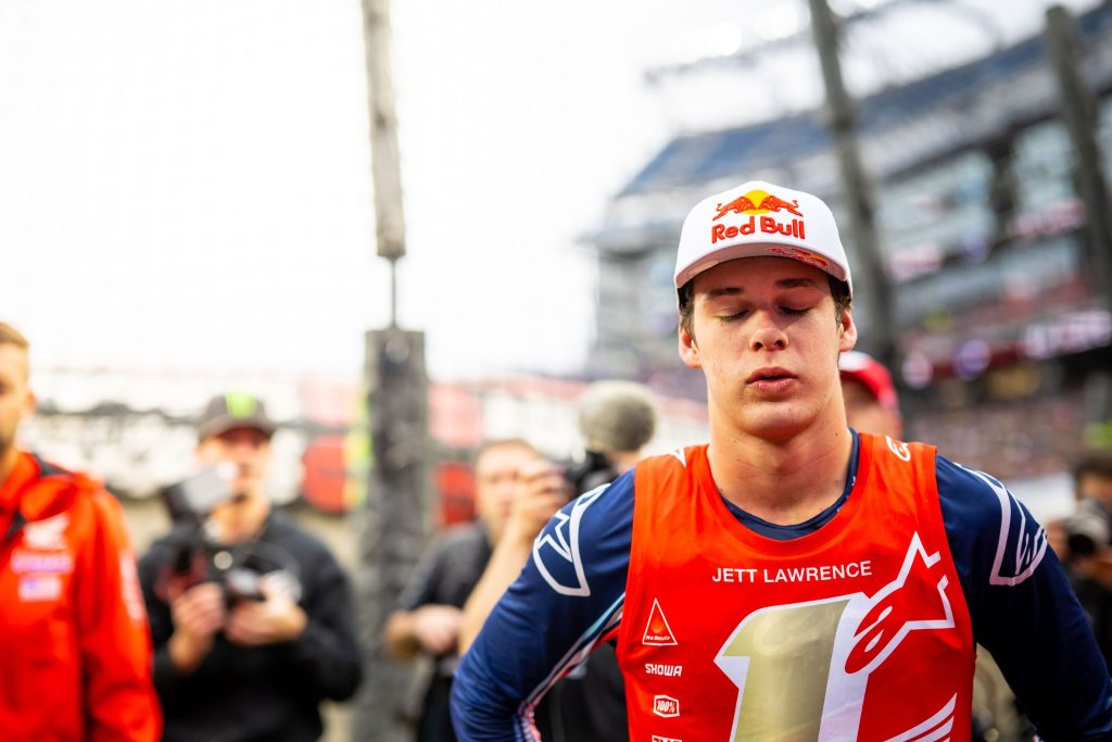 J. Lawrence: I give a lot of crap to the media (us idiots) because we talk about Jett A LOT, but I mean the kid is nice as can be, rides unbelievable and is your East Coast SX Champ so why wouldn’t we talk about him when he wins right? Jett didn’t have great starts all day, but plugged away and chipped at the leaders and had the pass made on Forkner only to get swooped back down the start straight. Jett and the whole Honda team deserve a big round of applause because the CRF250R is a new bike and they didn’t a have a lot of parts at the beginning of the year or much testing time, but here they are as the 250 East Champs!