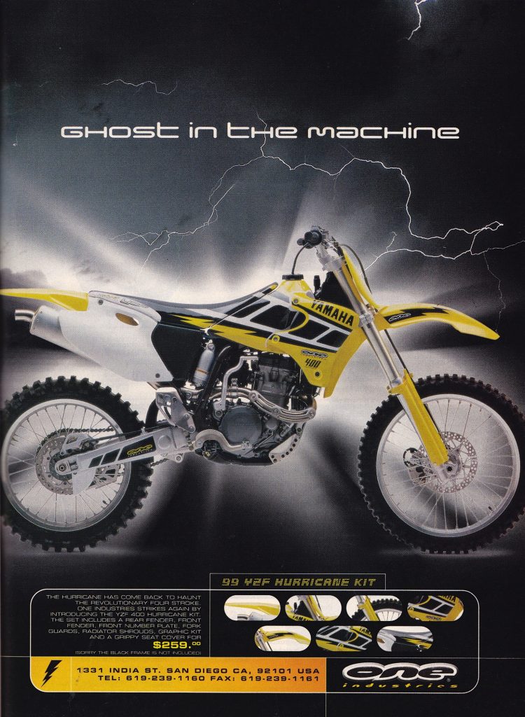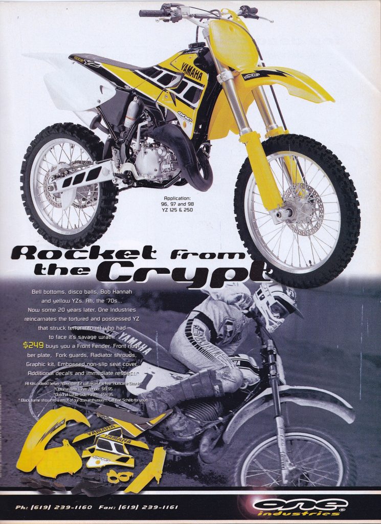 Over the next decade, the Hurricane kit would remain in One Industries’ lineup as one of the most popular accessory kits for Yamaha riders. Later they would add similar restyling kits for Hondas and Suzukis, but the Bomber and Elsinore kits never quite caught on with the same enthusiasm that made the Hurricane such a hit. Today, One Industries is another casualty of the corporate buyout mentality that has ruined so many other iconic brands both inside and outside of our sport. While the brand is sorely missed, its influence lives on in many of the great gear and graphic designs we see from others throughout the industry.