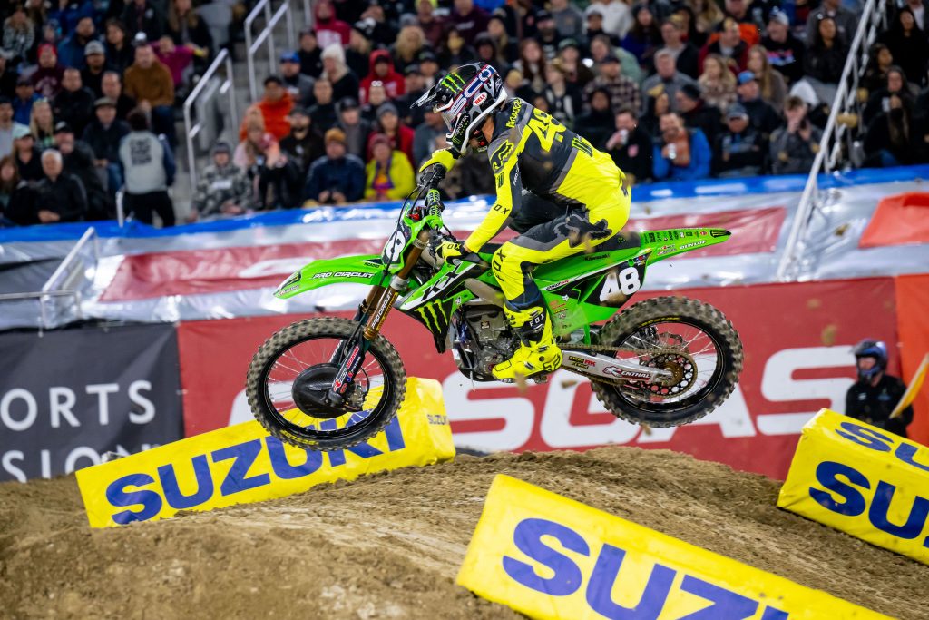 Hunter Yoder: I called Hunter to do the 2023 Kawasaki KX250 intro with me late last summer and he really liked the bike so here we are! The PRMX team has taken him under their wing and as you can tell, he is much better in his sophomore year. If you would of asked Hunter if he was racing Supercross late last summer, he would of told you that he didn’t know and that he could be getting a “real” job. Winning the LCQ may not be a big deal to some, but with every man’s trash is another man’s treasure and this was a great win for Yoder as well as another building block for him to succeed in this sport. Our sport is so quick to chew these young kids up and spit them out. They need more time to get used to Supercross and Hunter is an example of a kid that is very fast that needs just some time to build up his confidence/skills to get a better ride with more money. Kudos to you Team PRMX for giving this kid a chance!