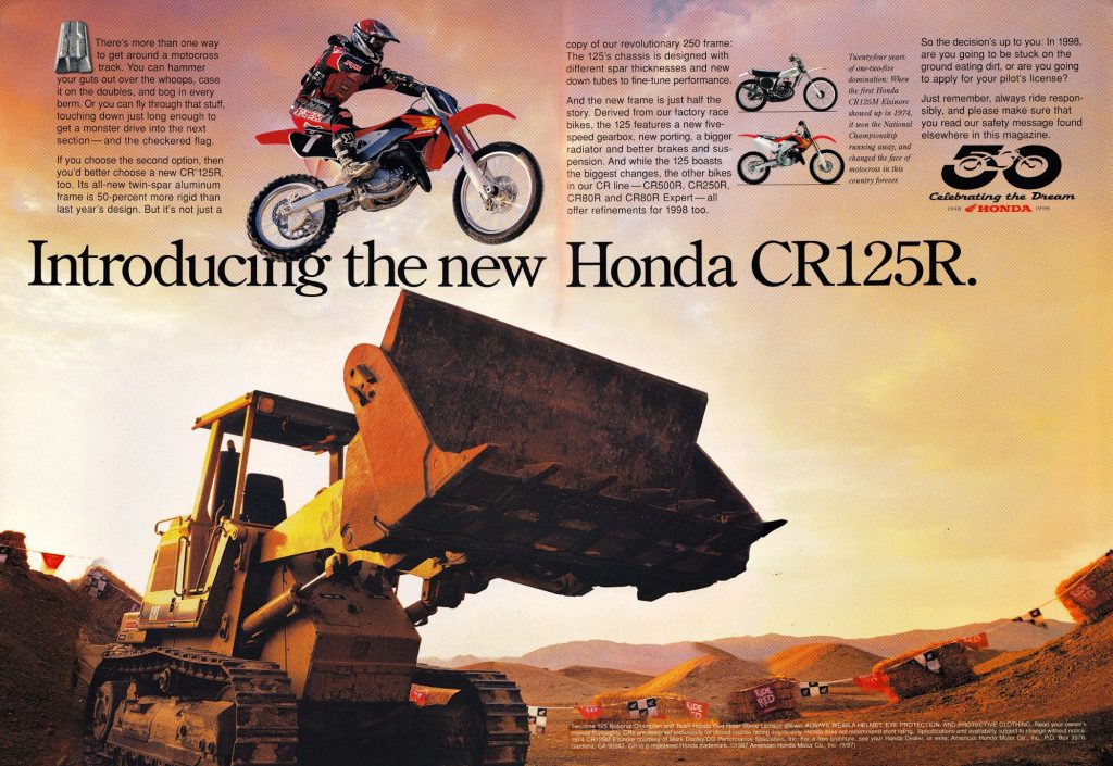 Honda’s CR125R adopted the 1997 250’s alloy frame design in 1998.