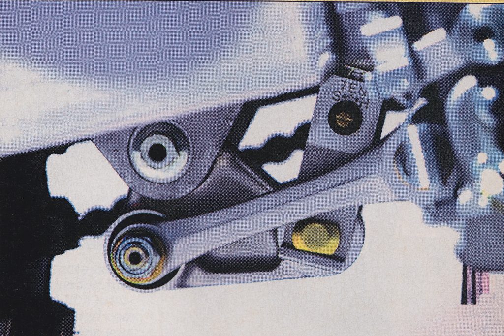 An all-new linkage for 1998 looked to address some of the complaints riders had voiced with the 1997 machine by offering a flatter curve that would prevent the shock from squatting excessively under acceleration. Photo Credit: Honda