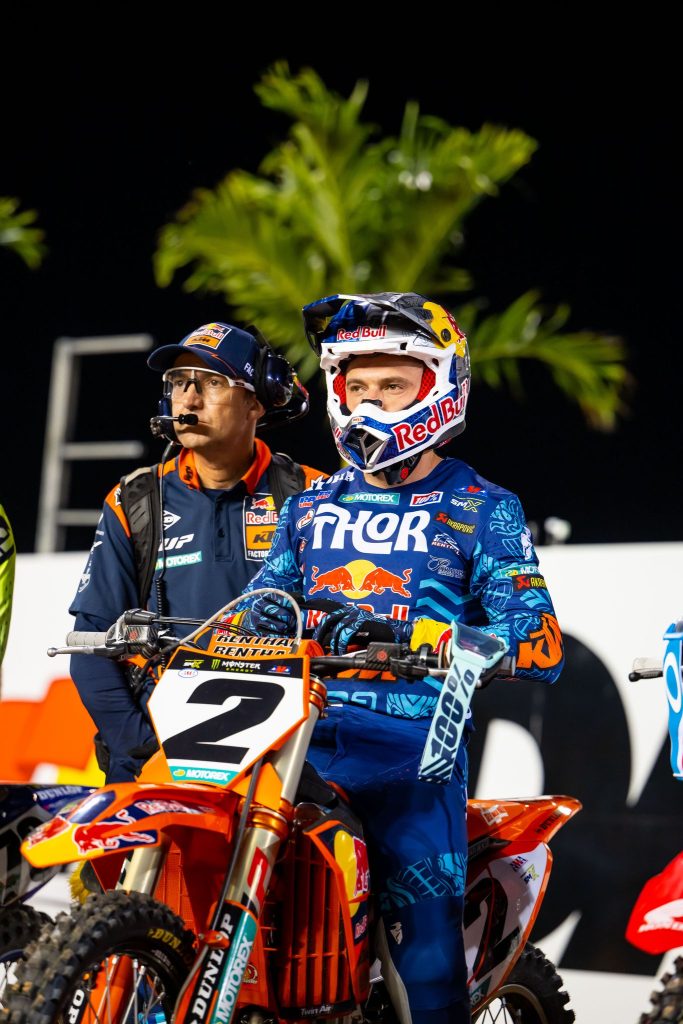 RJ Hampshire: Pretty impressive that a 250 guy can hop into the 450 class and win a heat and get top ten first race out! If I was Husqvarna I would maybe try to lock him in now for 24/25 450 class or else another team that is new/coming into the sport is going to snatch him up! I may or may not have a birdie in my ear with some secrets.