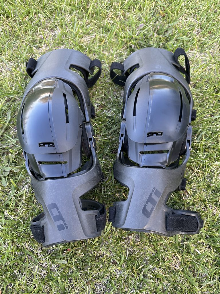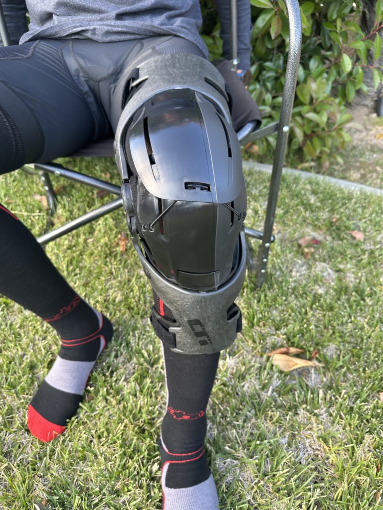 I normally wear the custom CTi custom knee braces but get asked A LOT on what off the shelf knee brace is best so from time to time I will revisit some other braces to keep in contact with non prescription based knee brace consumers. The CTi3 uses the same four way strap system to secure the brace to your leg like many other off the shelf braces (as well as the CTi custom braces) but what I enjoy the most is the large knee cup design for protection, yet that large look doesn’t feel that bulky when you slide them into your pants. You will have to be a little more patient when sliding your pants over the knee guard area (some pants come with a lot of pre curve so you will have to be careful). When you first view the CTi3 brace you’ll notice its bulky knee cup but once riding you will not feel that bulkiness within your pants or when squeezing the bike. I like the feel of the knee cup as I actually feel like my complete knee cap is covered/protected from debris/roost/crashes/or even stabbing my bars into my knee when I dive deep into a soft berm/pocket. The CTi braces are lighter than my custom braces and allows for a fresher set of legs after a long day of riding, which is a welcome addition for my recovery. The anatomical fit that CTi mentions above is legit because not only have I worn these CTi3’s a lot but my mechanic Eddie Laret (a bigger dude at 220 pounds) has also been wearing them with positive results. Coverage of the knee/shin/thigh area is excellent and the padding the CTi3 offers is not hindering or hard on your leg/knee. There hasn’t been a complaint about digging into skin or hot spots when the brace is on between Eddie and I. Full disclosure: we ran some of the early prototype CTi3 braces and worked with Ossur/CTi on specific padded areas to keep the rider comfortable. Eddie has been putting more hours on these than I have so he can attest to the durability of the brace and its parts. Squeezing the bike with braces are not as good as knee guards (contact feel) but the CTi3 does a great job at keeping the legs/knees close enough where I didn’t have complaints about contact feel.