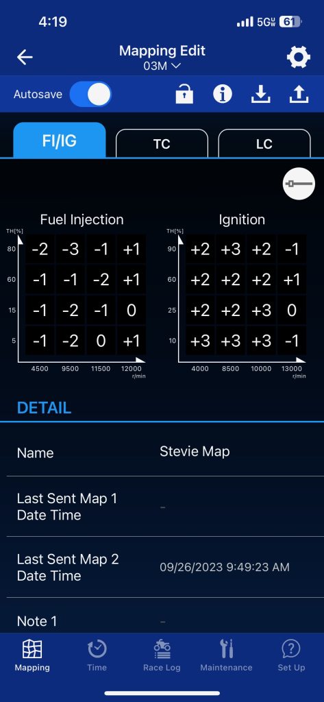 Steve Tokarski is a test rider for Yamaha and has come up with this map if you want to clean up the rich feel that we got on low rpm, as well as gives you more excitement in low-mid RPM (crack of throttle). Any questions about the new bLU cRU 250F? Email me at kris@keeferinctesting.com as we are here to help you. We don’t just throw up a video then leave you like some others. We are HERE FOR YOU!