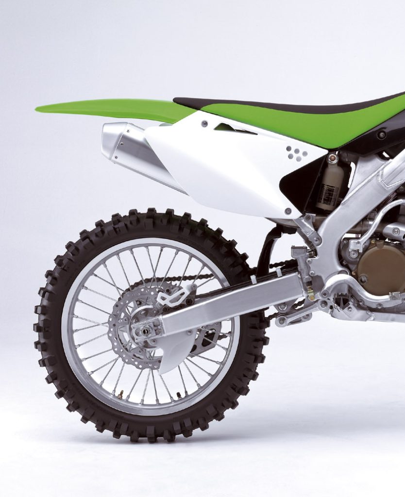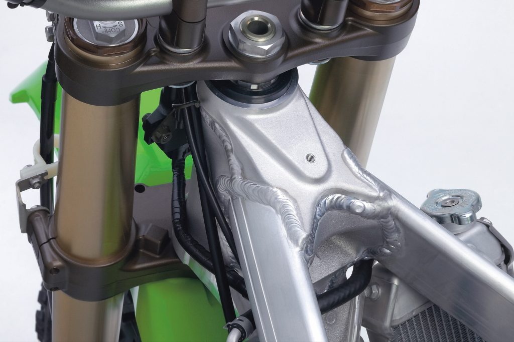 Beautiful craftmanship from the clean alloy welds to the trick bronze coatings on the components helped the KX stand out from the crowd in 2006. Photo Credit: Kawasaki
