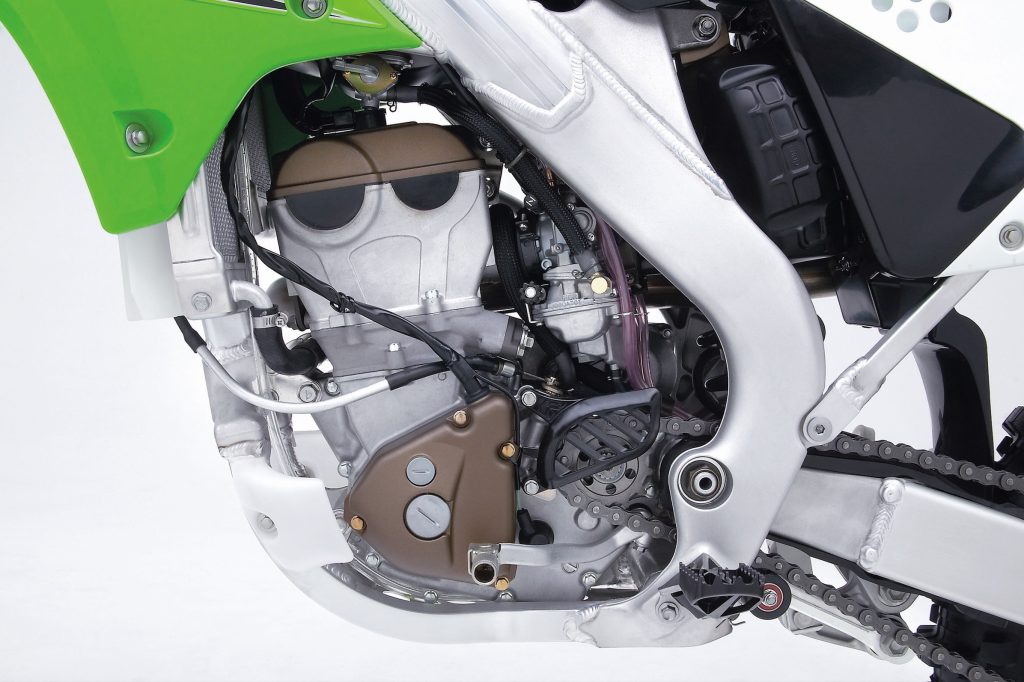 Significant motor upgrades for 2006 included new cams, upgraded valves, a redesigned piston, revamped ignition, beefed up clutch, strengthened transmission, and a more efficient oiling system. Photo Credit: Kawasaki