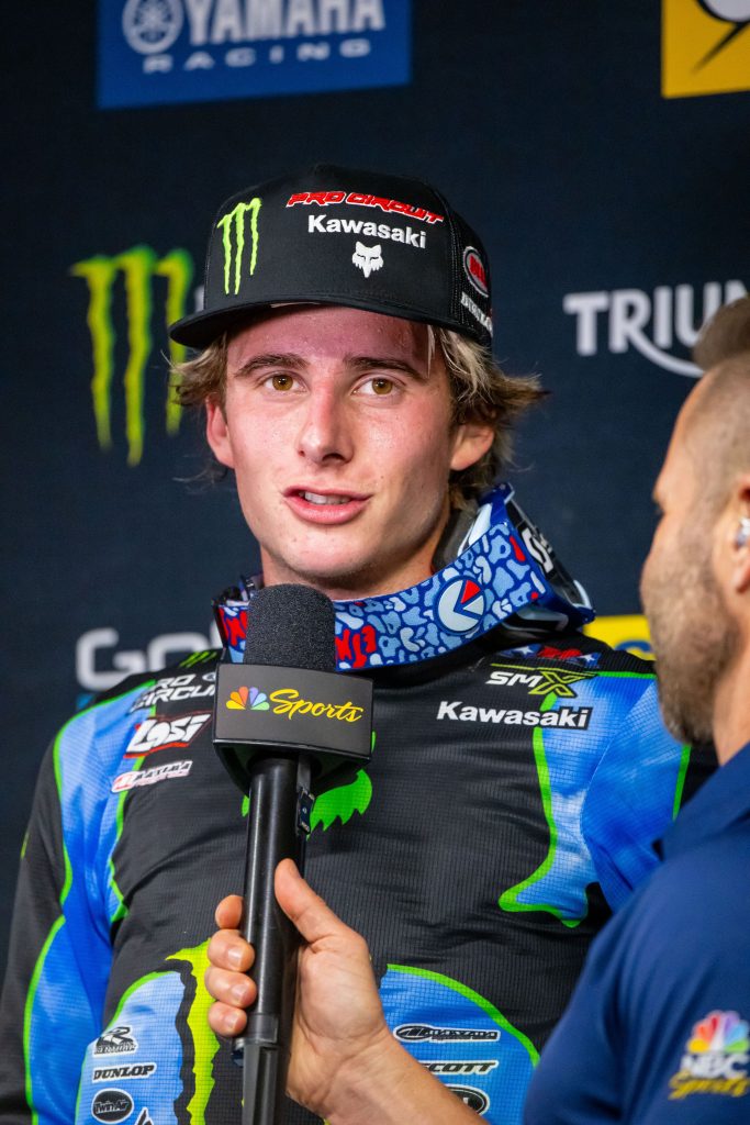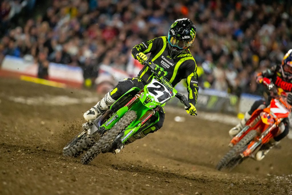 Levi Kitchen: Levi looks better on the Kawasaki. His starts have been better as well. I think at times when you have all of that Star Yamaha power, it can actually hurt you off the gate. Wheelspin, wheelies, etc. looked to be the problem last year for Levi. This year, the PC Kawasaki might have a little less hit/low end pull and it is actually driving out of the gate. His body positioning off the gate looks tighter as well. Levi also has more fitness to me this year and looks less loose towards the end of mains. Yes, they were shorter than normal but you can see in the last moto that he was playing it smart and holding himself back. He sprinted with Thrasher and then chilled. That is a championship mindset.