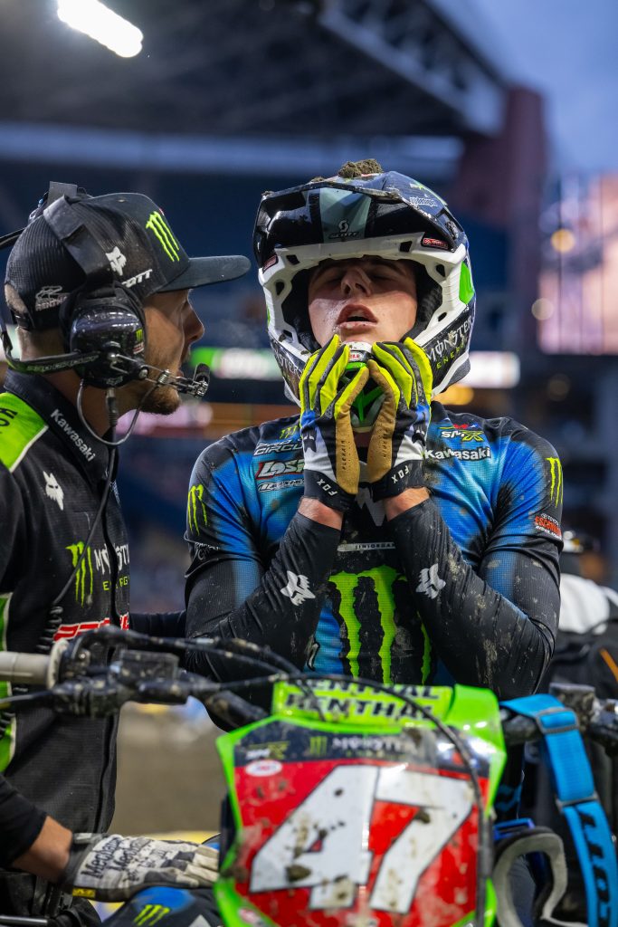 Levi Kitchen: Anyone else think Levi fits the Kawasaki better? The tall lanky rider seems to ride the KX much better than the YZ-F. He doesn’t look as tall on the bike and looks to be able to put the bike in spots that he couldn’t on his Yamaha. I also agree that a little less front side/bottom end can help riders get off the gate better because the bike will NOT wheelie coming off the grate. Levi’s starts are better in 2024, no denying this! Mitch and the PC boys got this bike working great! Too bad Kawasaki is changing the KX250 next year!