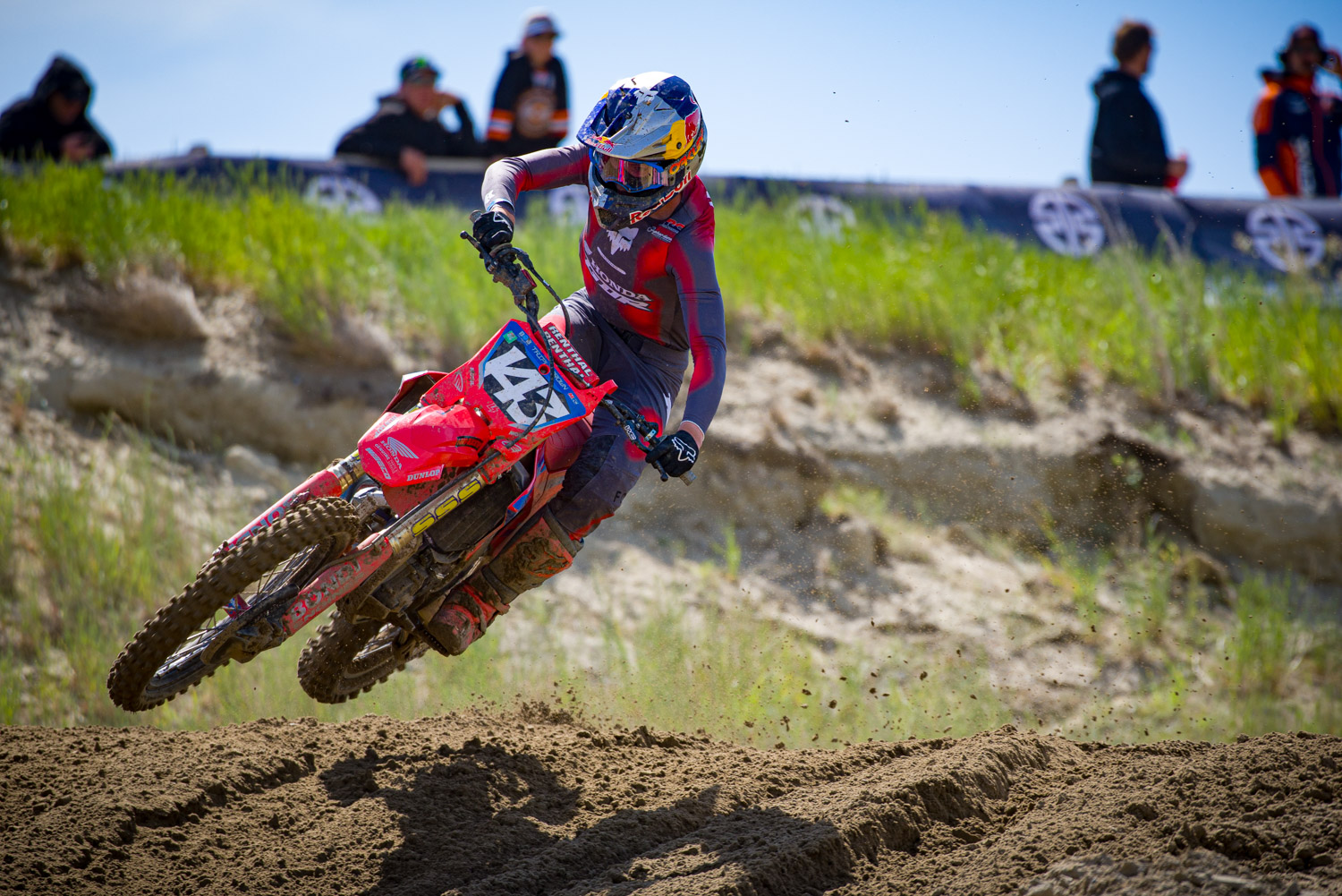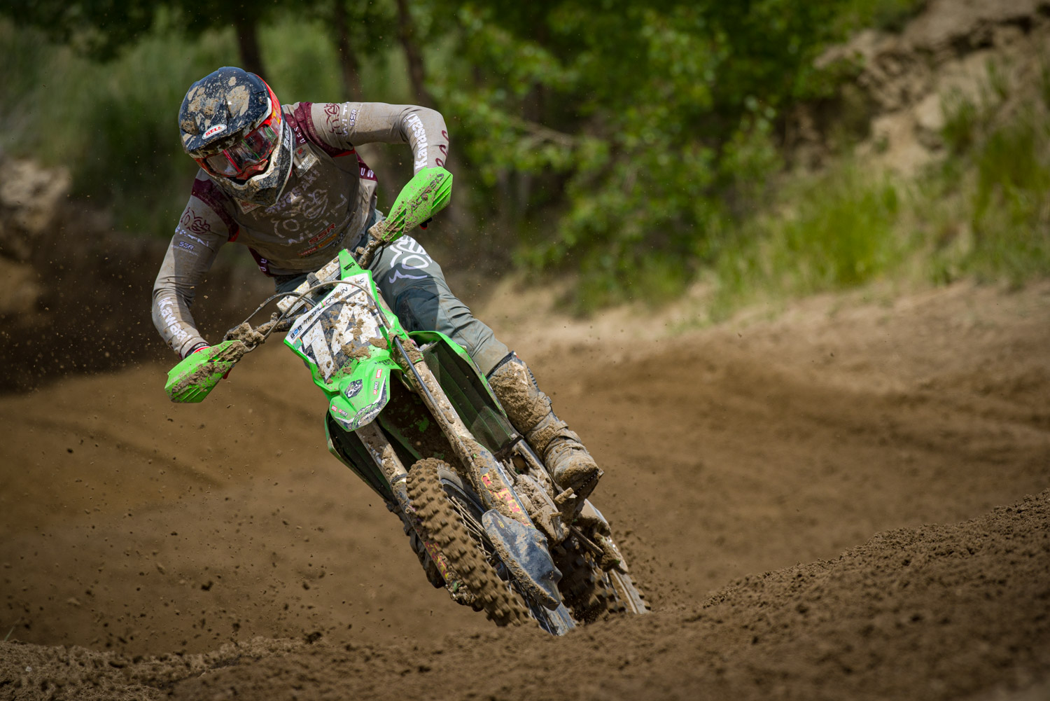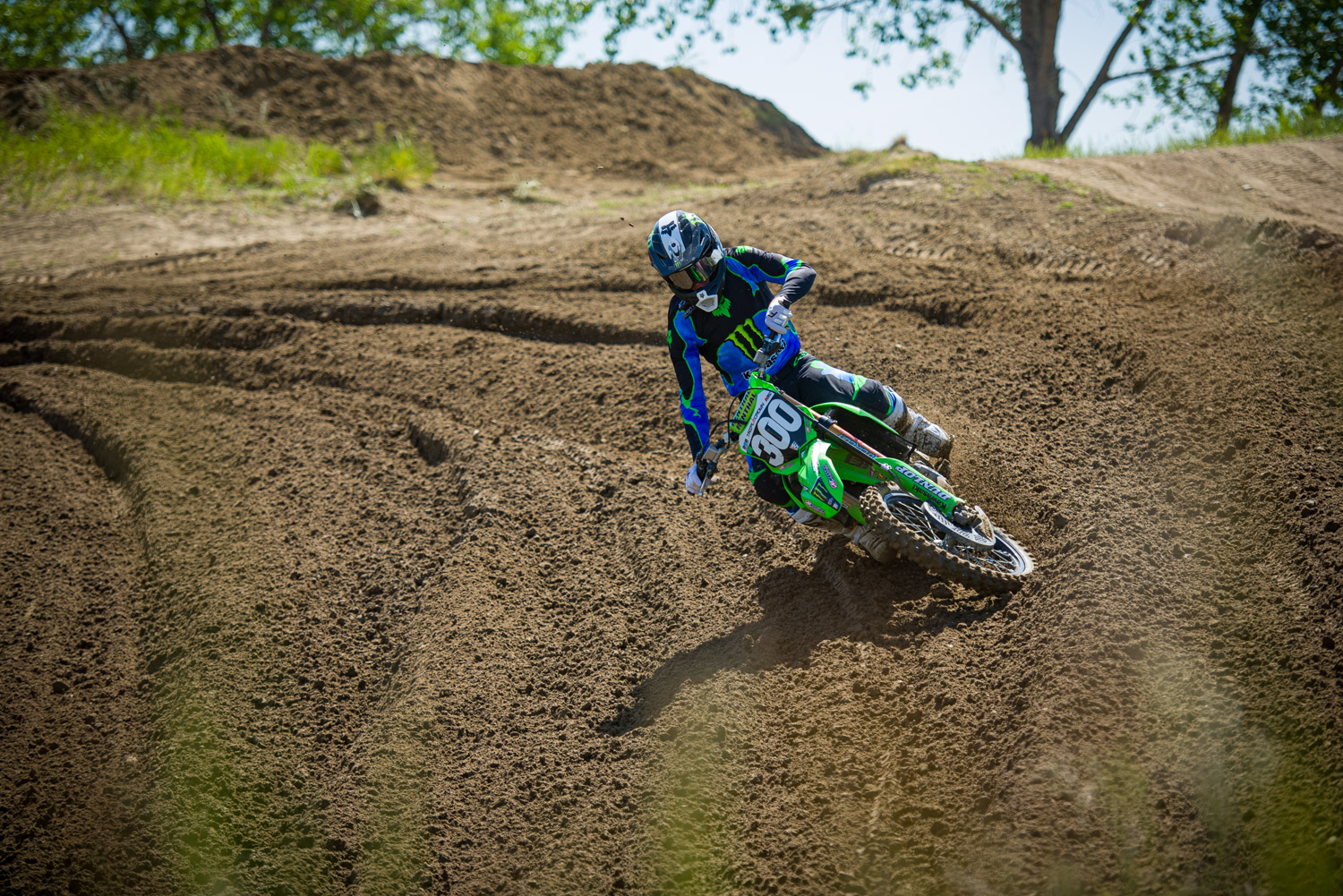 Caught up in Benoit’s first turn tip over, Drew Adams, had an even more impressive charge, as the Team Green prodigy ripped through the pack all the way to take the lead and the moto win by the end of the moto. Unfortunately, a crash while leading in moto two knocked him out of the race.