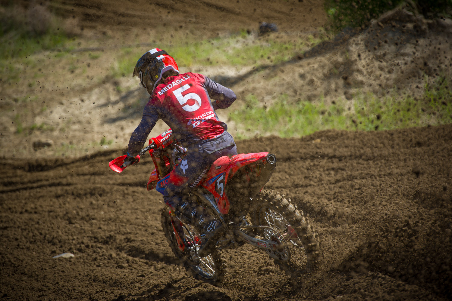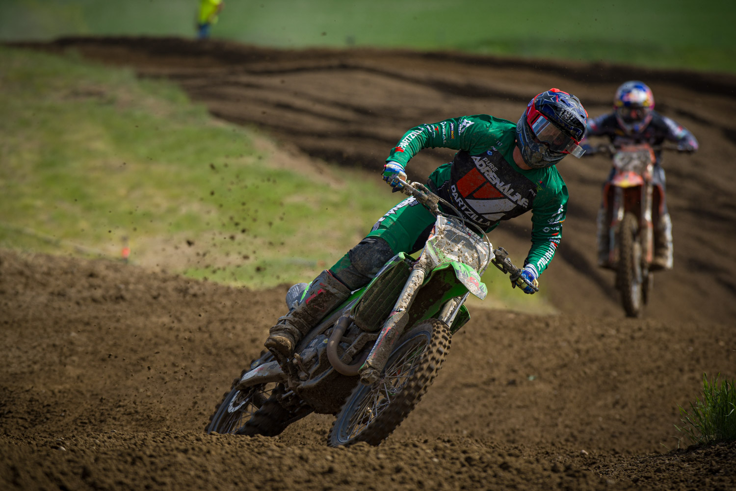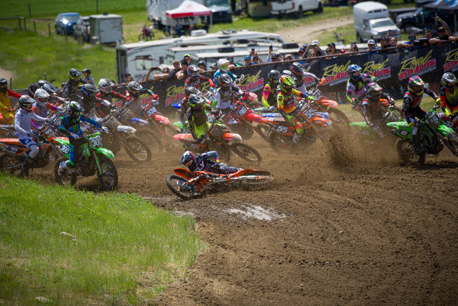 Caught up in Benoit’s first turn tip over, Drew Adams, had an even more impressive charge, as the Team Green prodigy ripped through the pack all the way to take the lead and the moto win by the end of the moto. Unfortunately, a crash while leading in moto two knocked him out of the race.