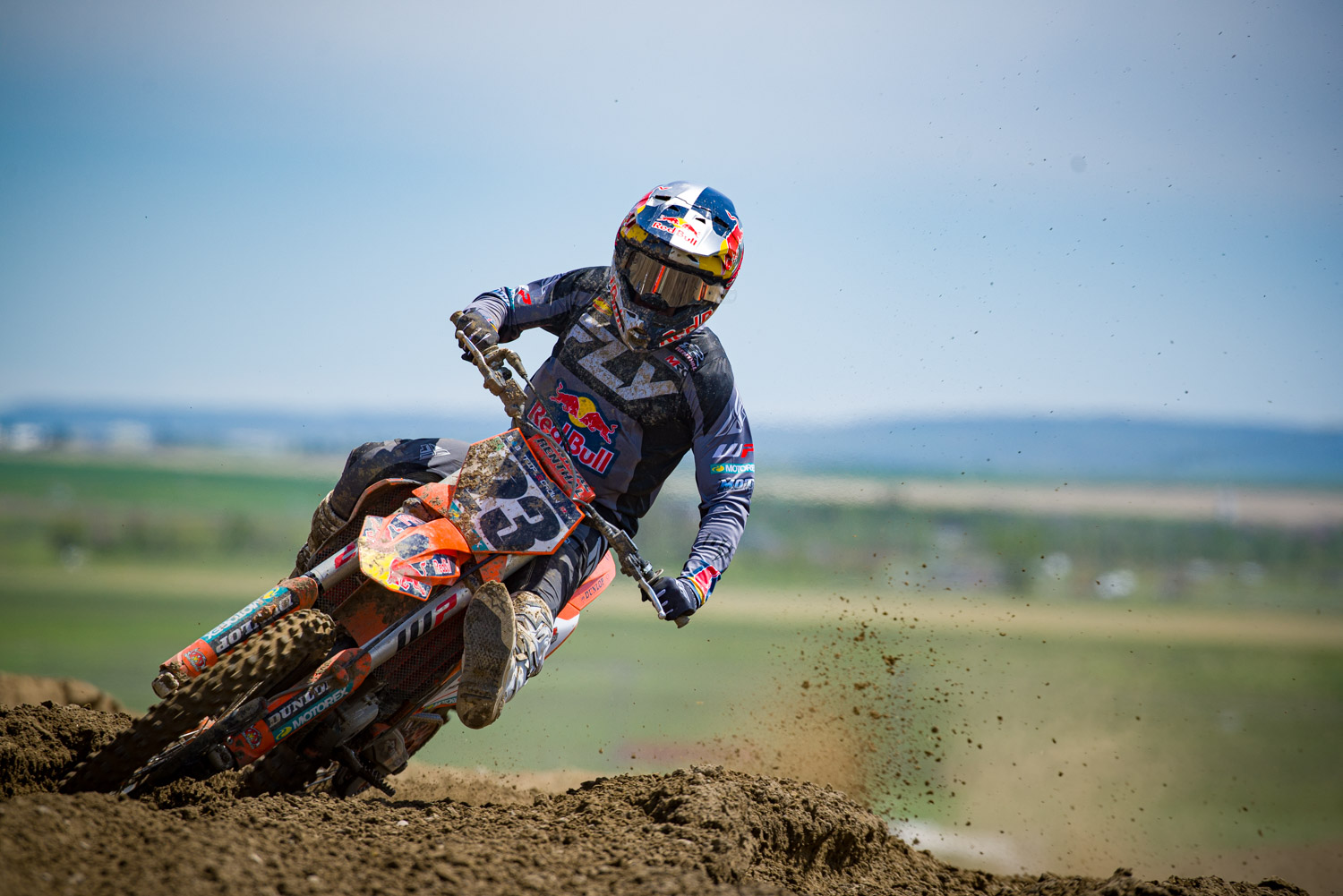 With Benoit and Adams down, Gage Linville grabbed the early lead and led most of moto one, before Adams got him with two laps to go. A 7th in moto two gave him 3rd overall.